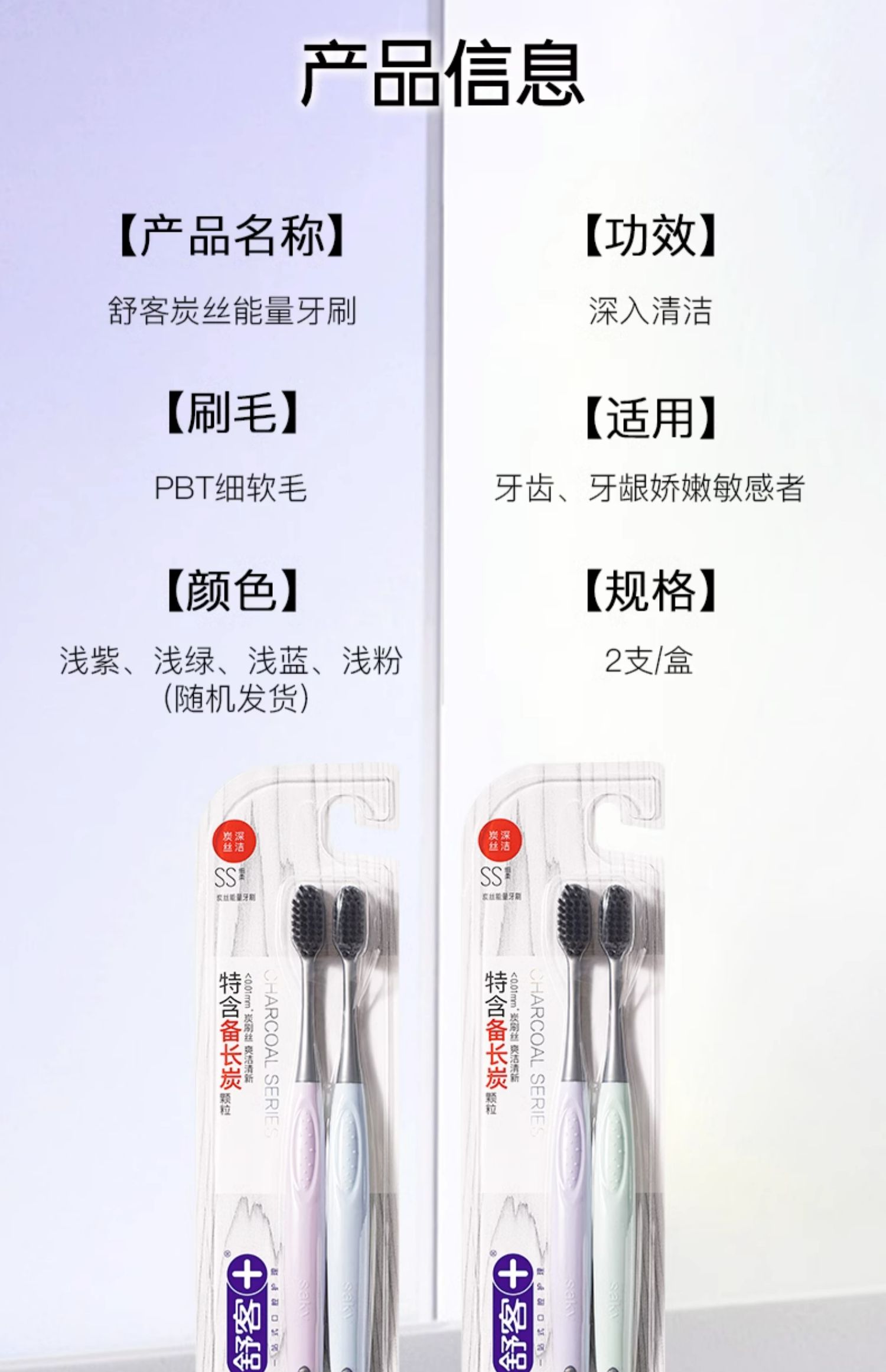 商品介绍:【舒客】炭丝软毛牙刷8支