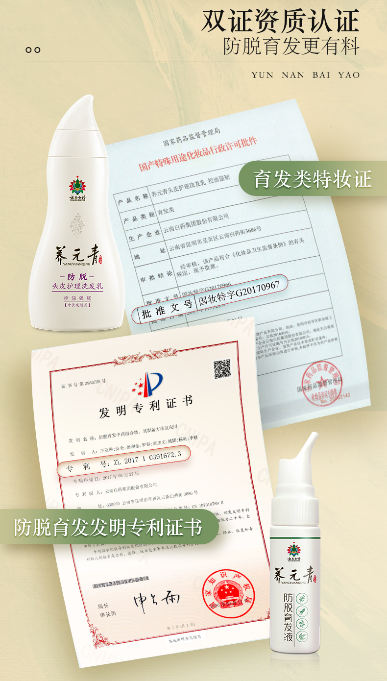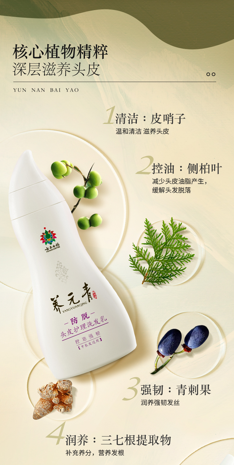 商品介绍:【拍3件】云南白药养元青防脱洗发水270ml