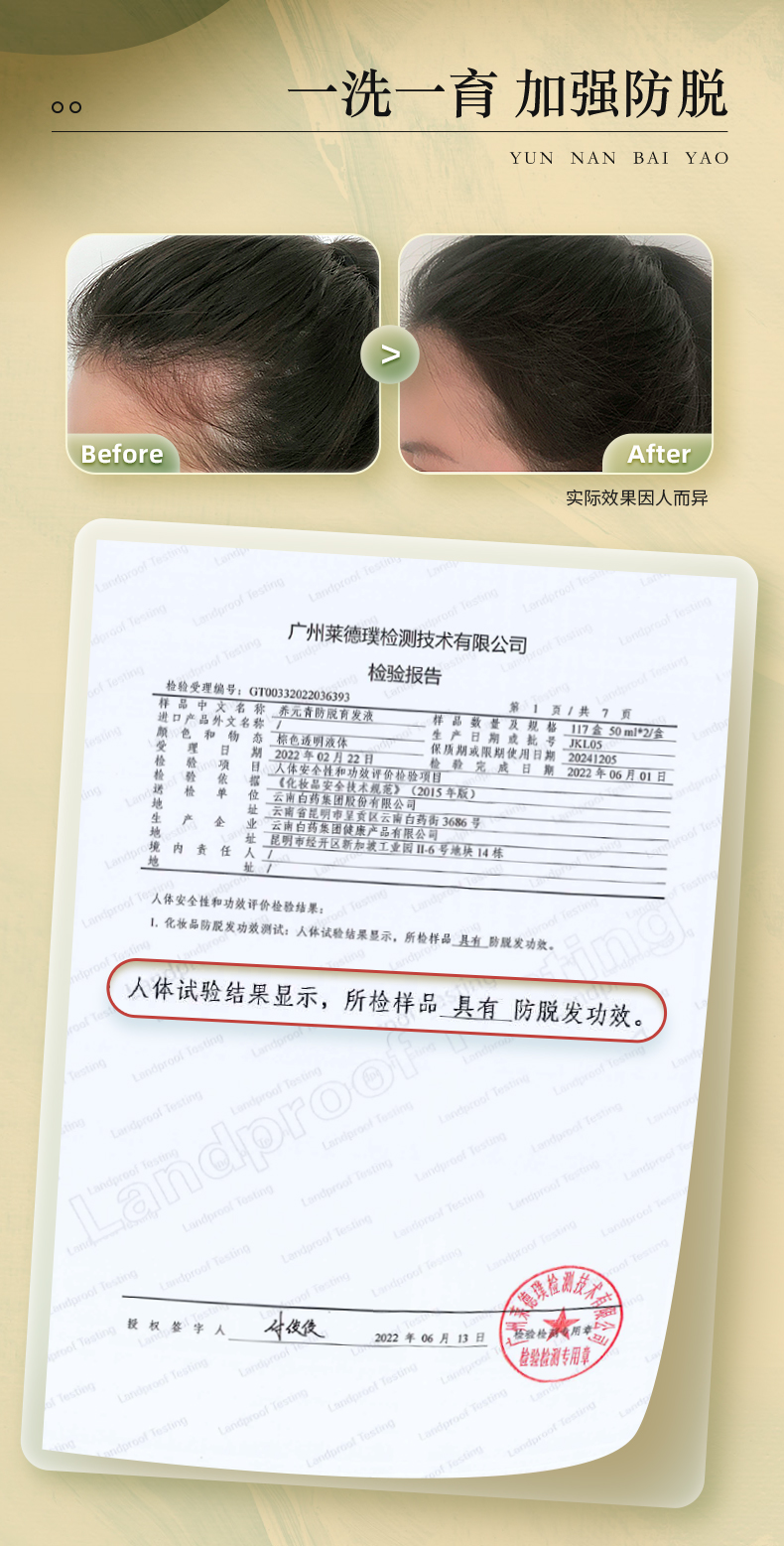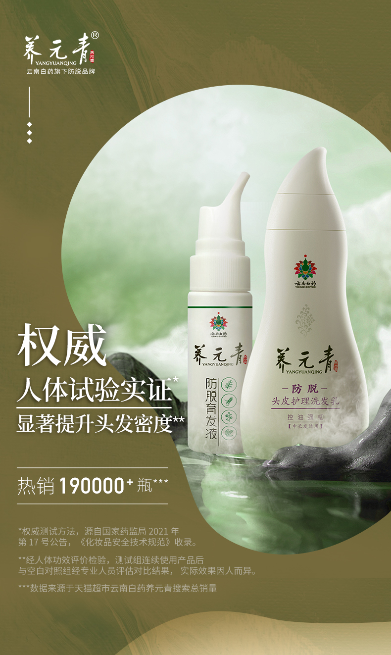 商品名称:云南白药养元青防脱洗发水育发液套装270ml控油蓬松女旅行装正品