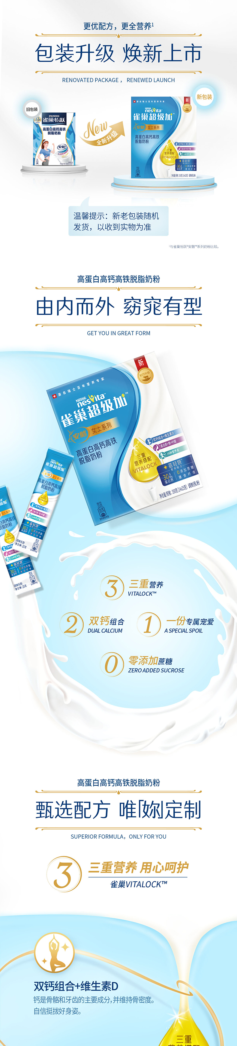 商品介绍:雀巢双钙脱脂高钙女士牛奶粉350g