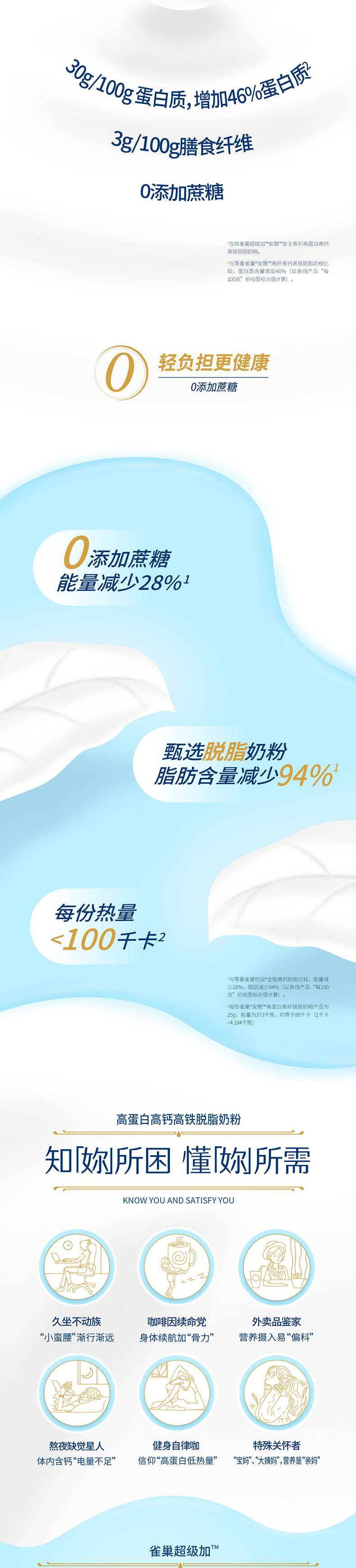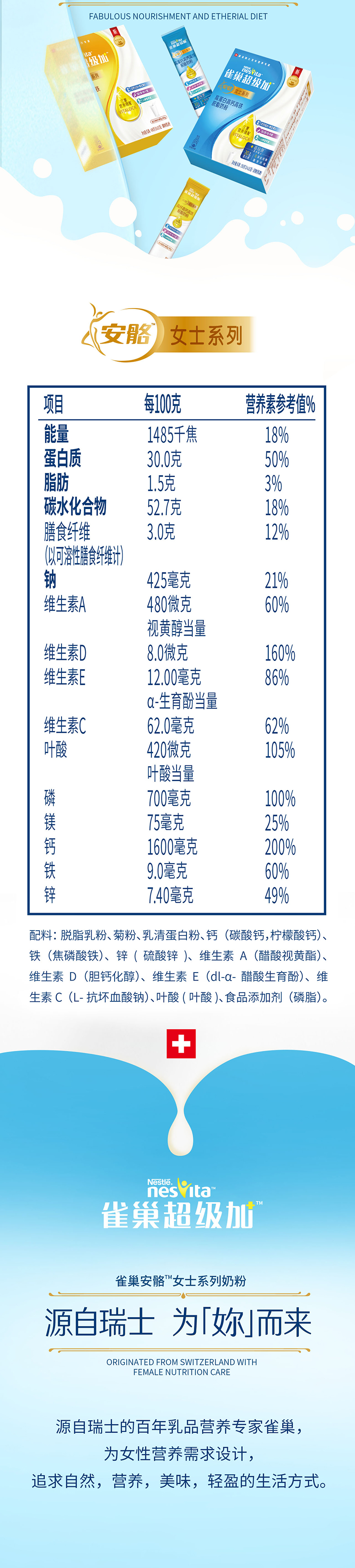 商品简介:【立减10元,】甄选脱脂奶粉,脂肪含量减少94%,双钙组合高钙好吸收。0添加蔗糖,轻负担更健康!唯(妳)定制!双重营养用心呵护!独立包装方便携带随时享用!