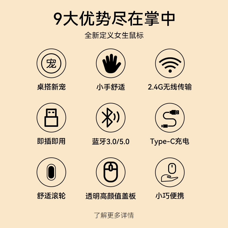 商品简介:达尔优水波纹无线鼠标静音女生可充电蓝牙双模台式电脑笔记本通用.。。