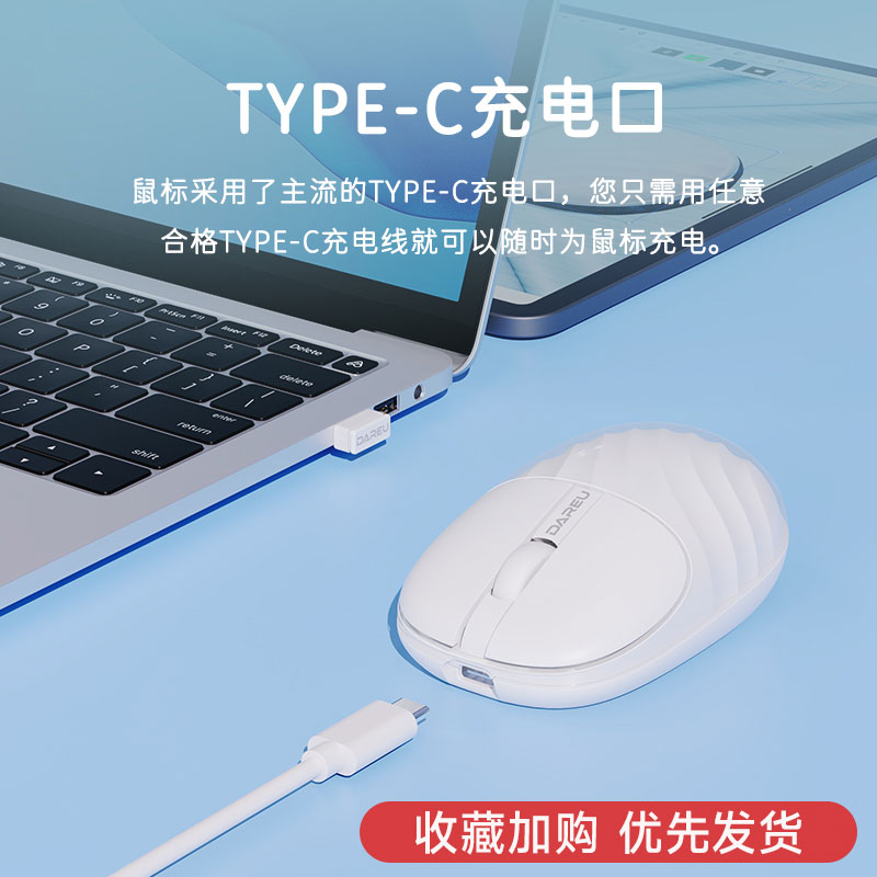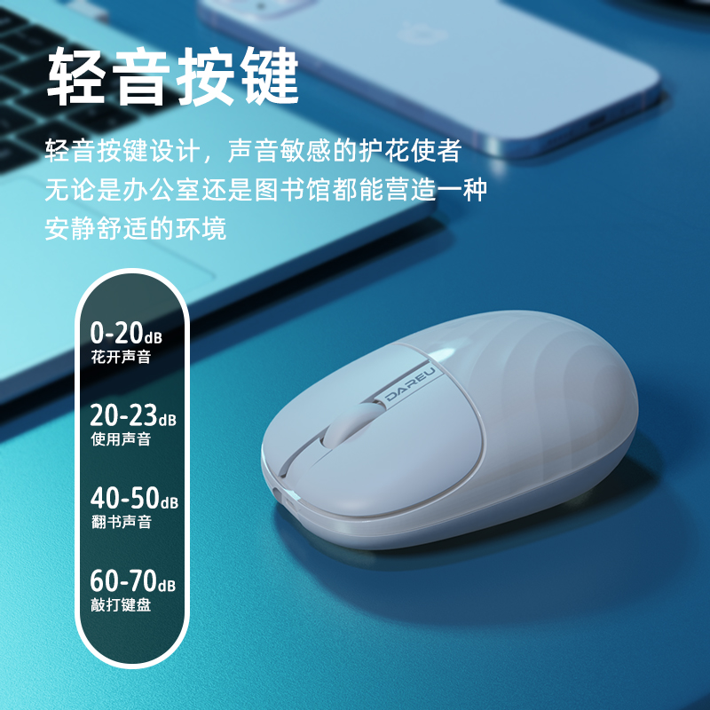 商品介绍:达尔优水波纹无线鼠标静音可充电蓝牙