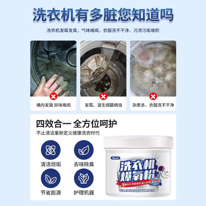 商品名称:洗衣机爆氧粉强力除垢杀菌消毒清洁剂滚筒波轮专用清洗槽污渍神器