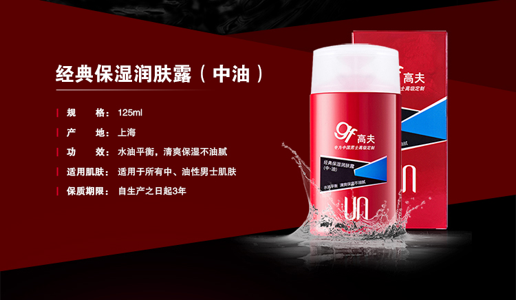 商品名称:高夫男士经典保湿润肤露(中-油)控油补水乳液清爽护肤乳霜125ml