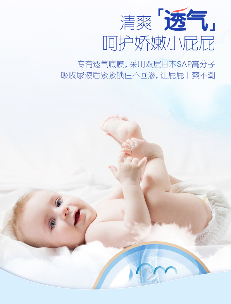 商品简介:【拍一4包79.9,折合19.9/包】超薄芯体,薄如一枚硬币,更薄更透气,适合夏天;海量吸收力,5-8次尿量,一夜一片,宝宝妈妈都安睡;更适合体型大的宝宝!