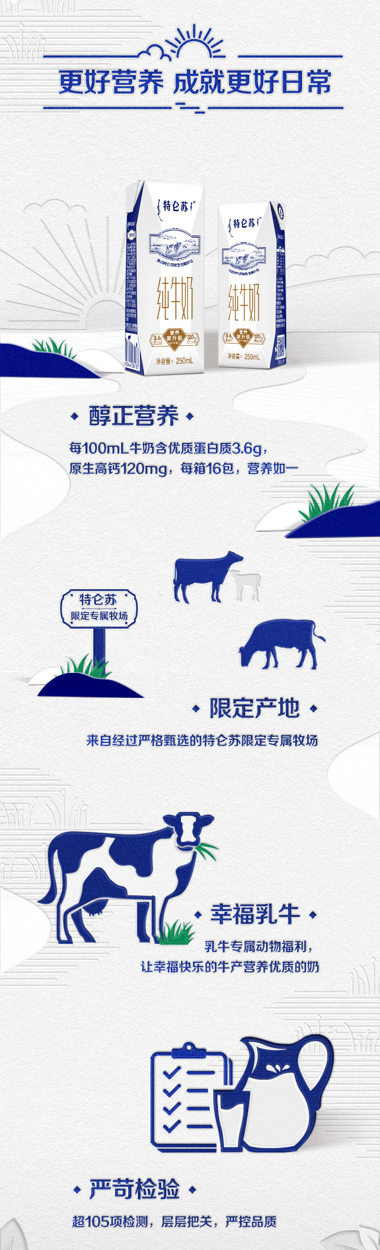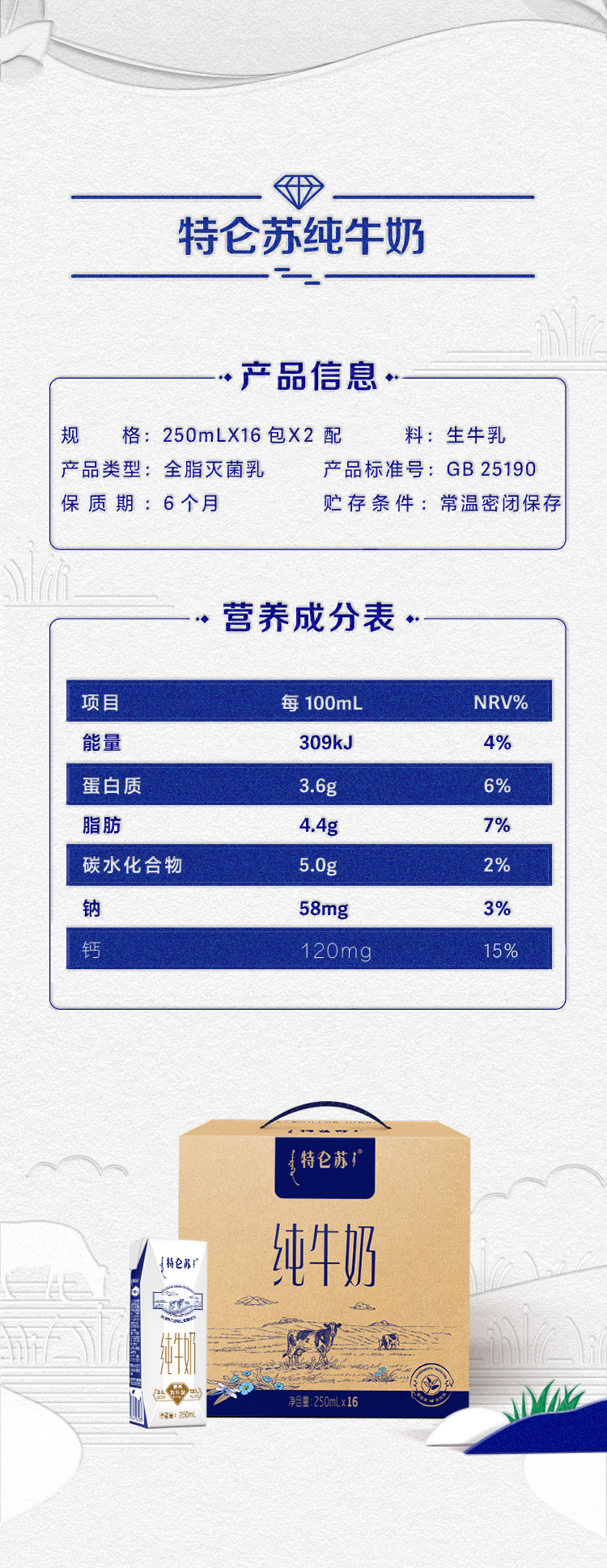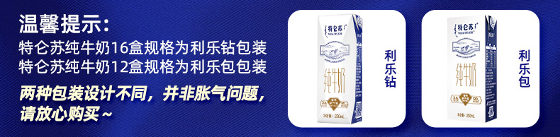 商品介绍:蒙牛特仑苏纯牛奶250ml*16盒*2箱