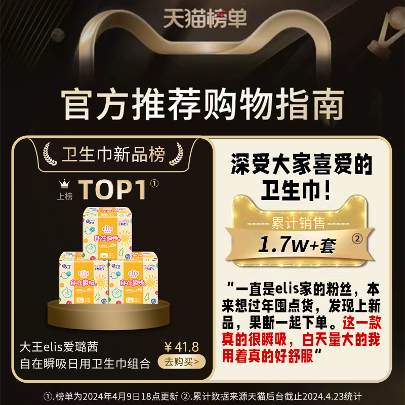 商品介绍:大王elis爱璐茜自在瞬吸夜睡裤卫生巾共54片