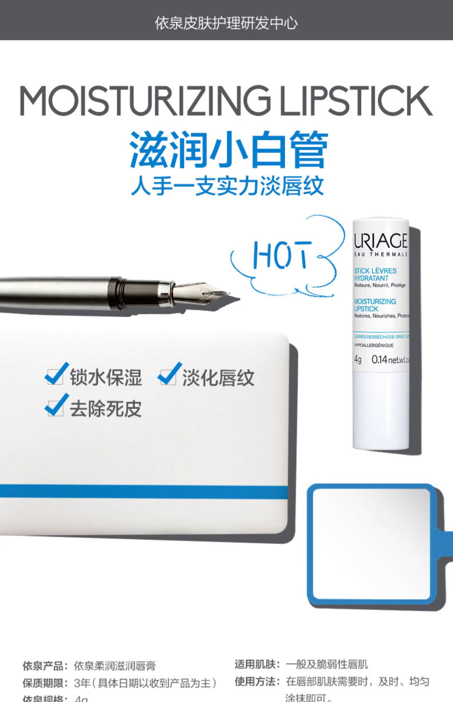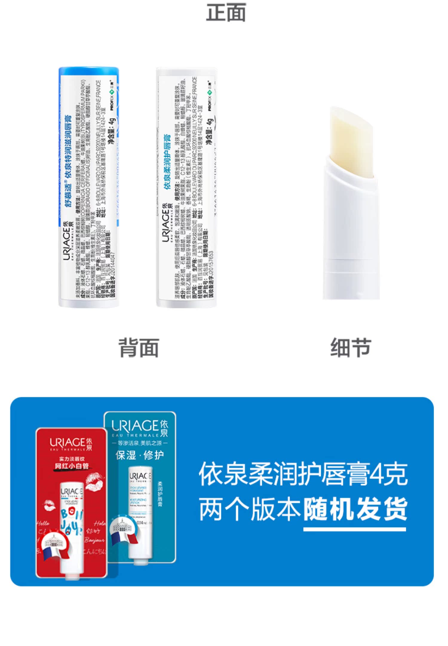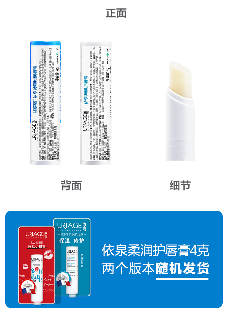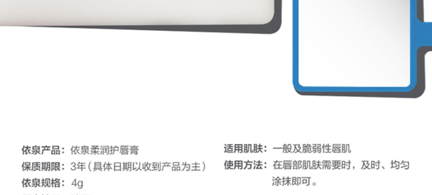 商品名称:屈臣氏依泉护唇膏白管柔润蓝管特润锁水保湿修护唇膜日夜2-3支