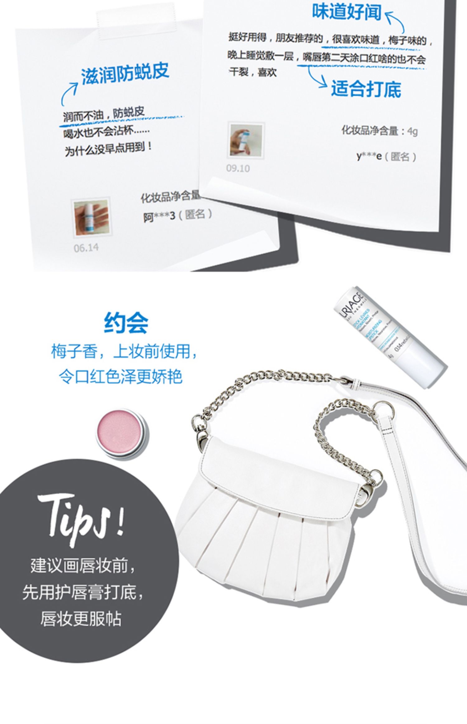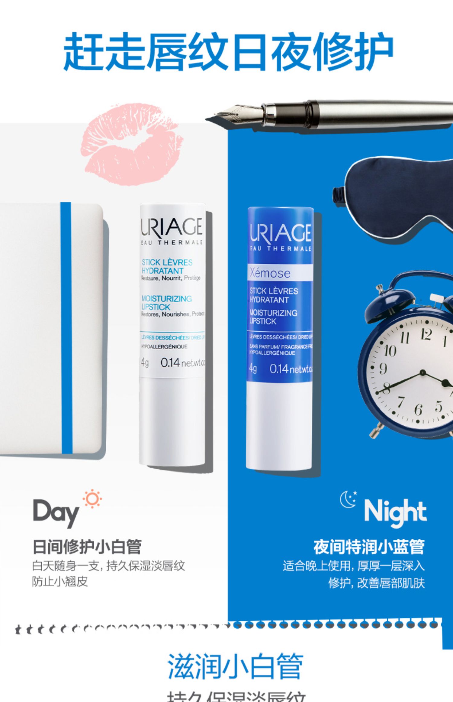 商品简介:【屈臣氏官方旗舰】【0.01元入会领礼包,叠加新会员99减20,超划算!】法国原装进口,水润保湿日护夜养,双管齐下,保湿淡唇纹,整日水润呵护,保湿柔嫩,哑光不腻,夜间做唇膜,持水丰盈淡唇纹,日夜稳护,倍享水润嘟嘟唇,秋天来了,冬天还会远吗,强烈推荐~【赠运费险】