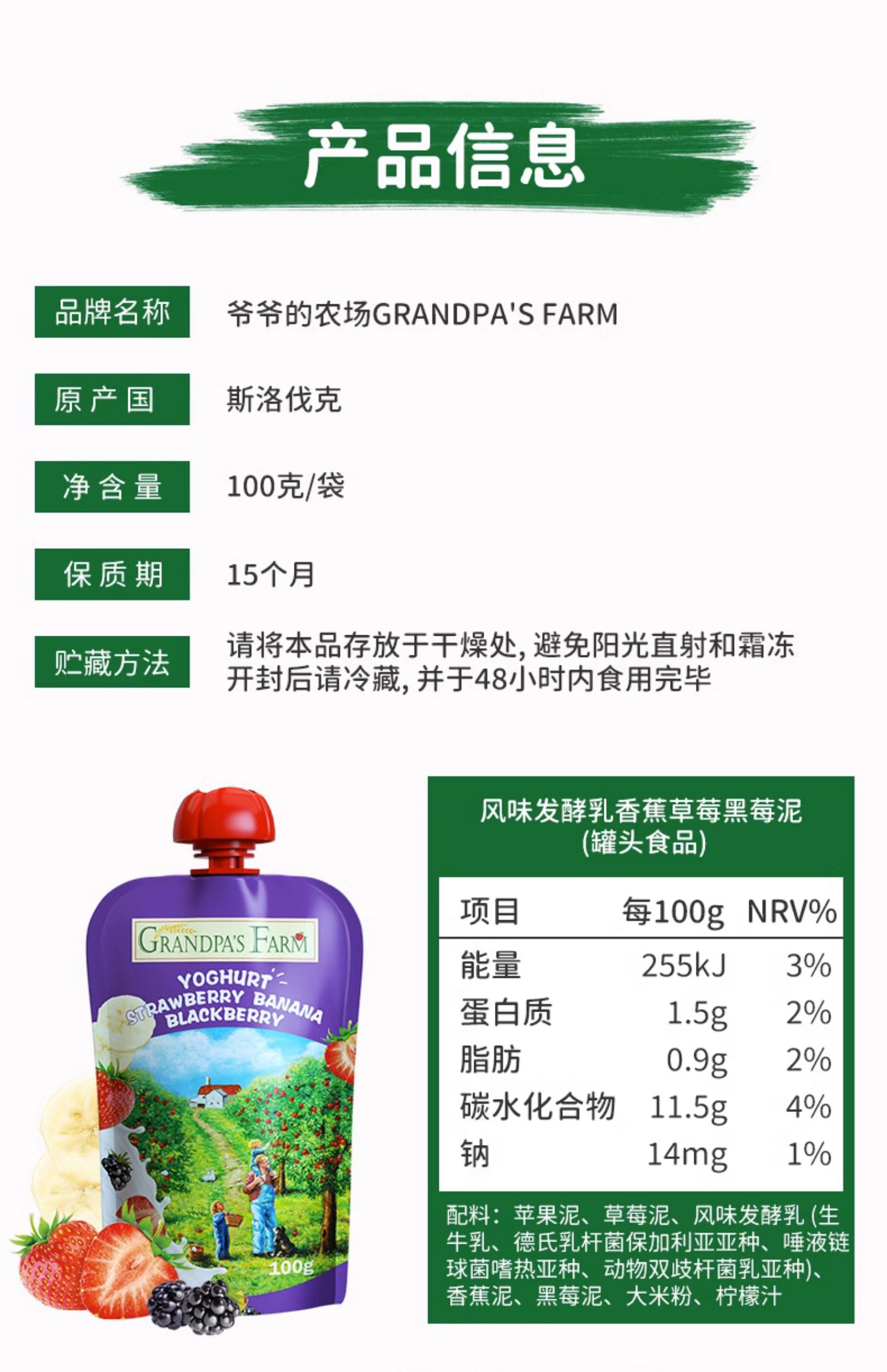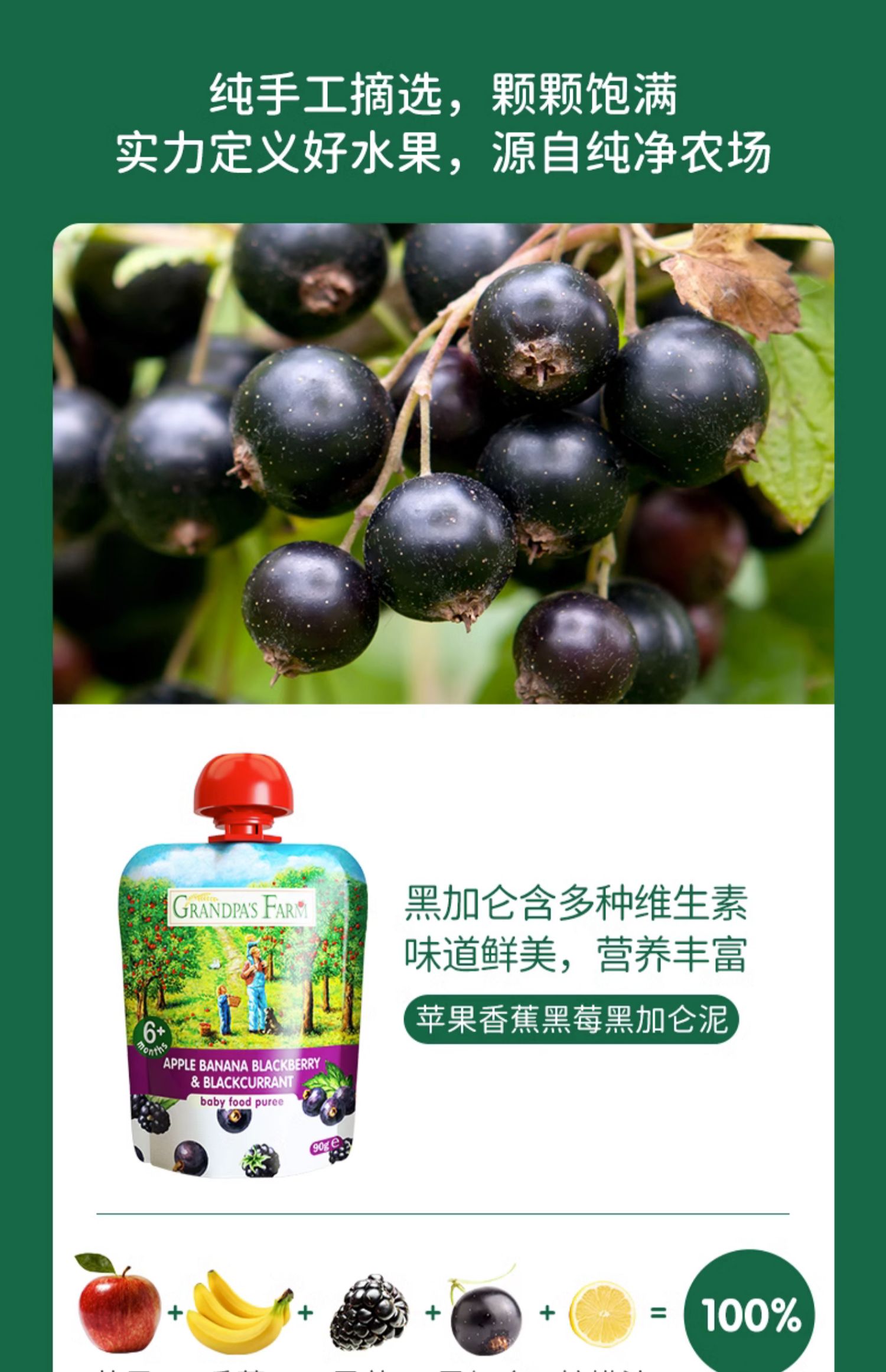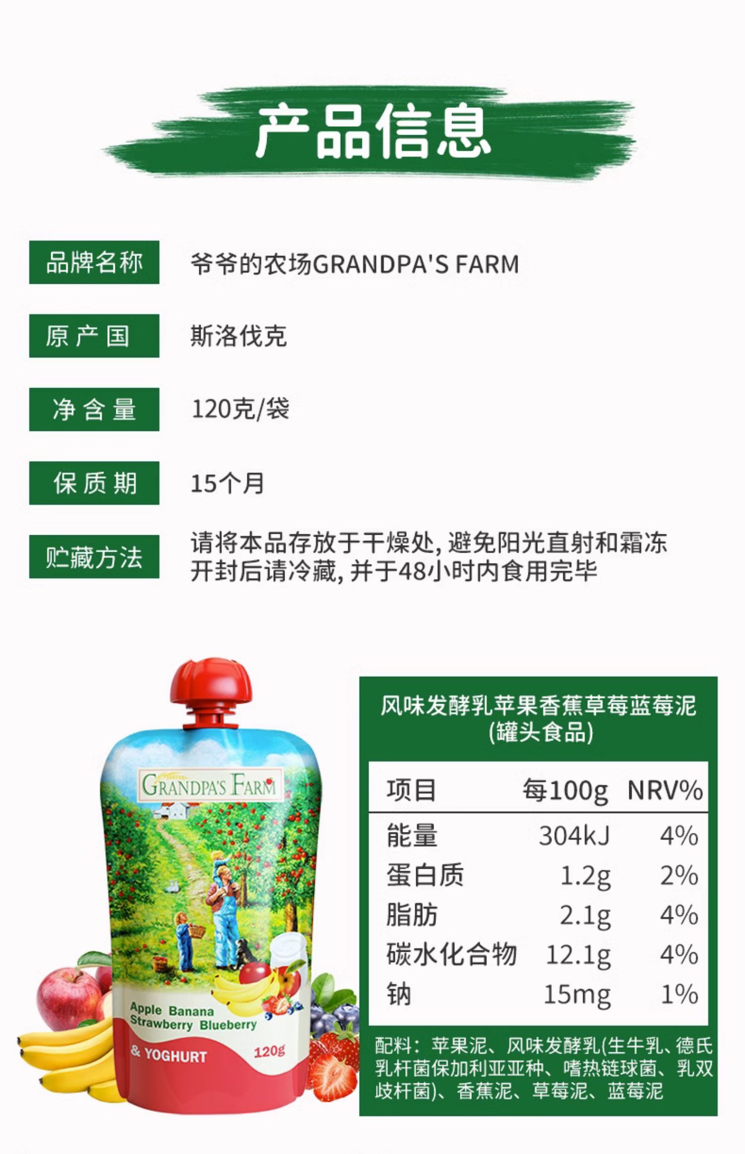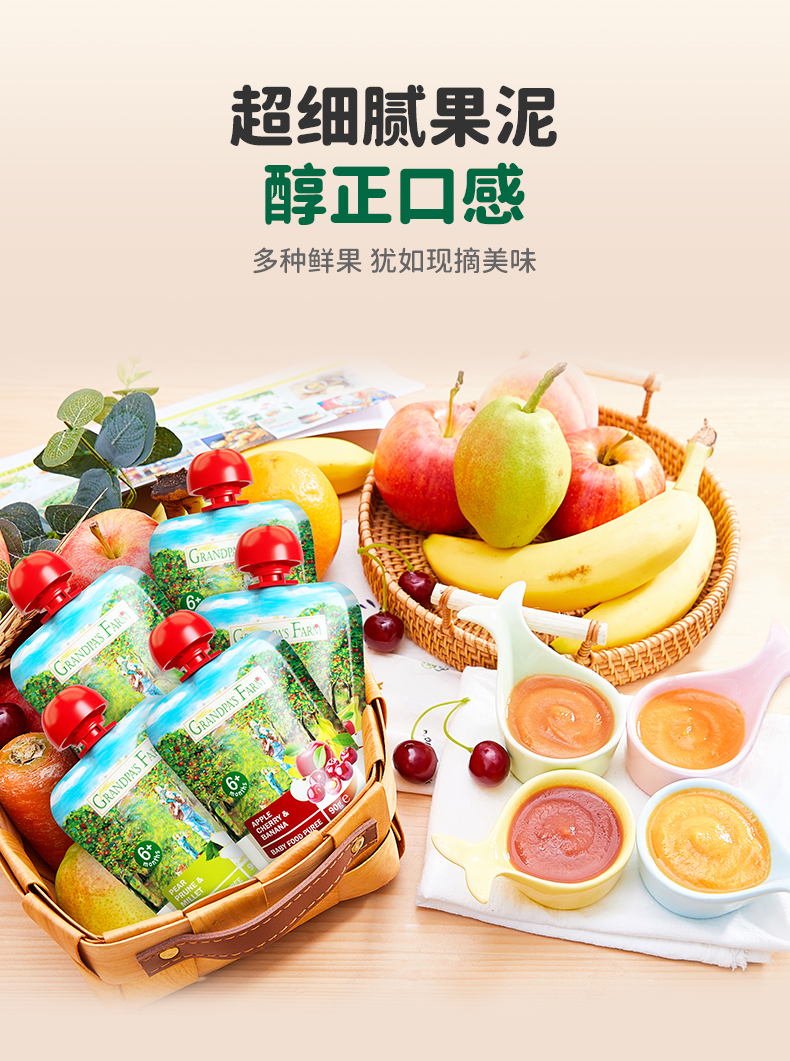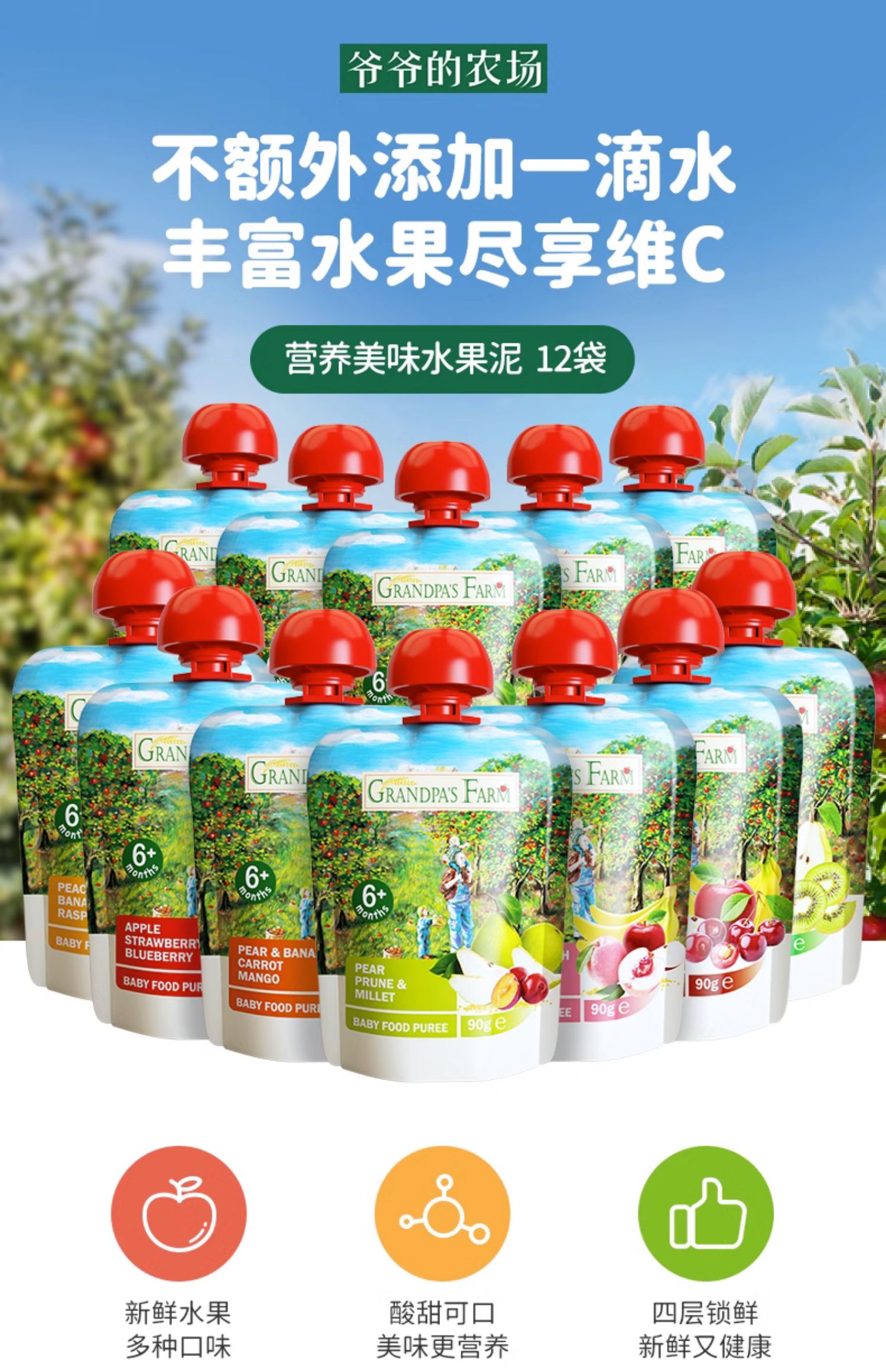 商品介绍:爷爷的农场!进口宝宝辅食多口味果泥*12袋