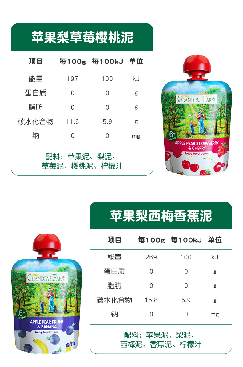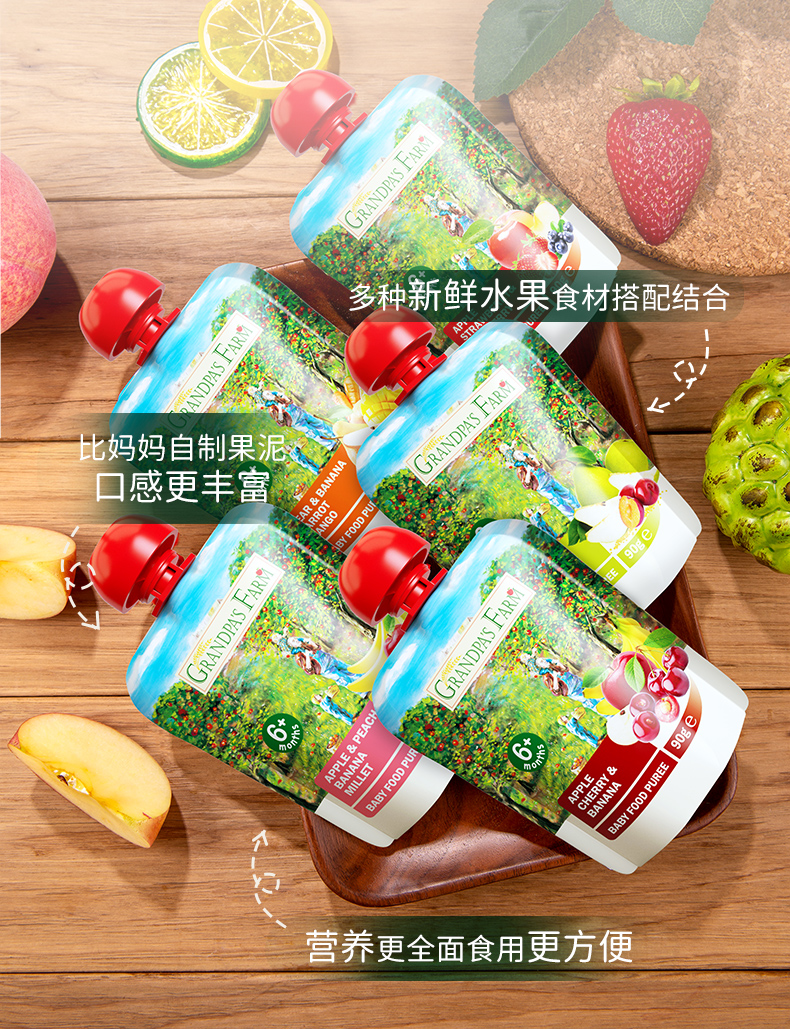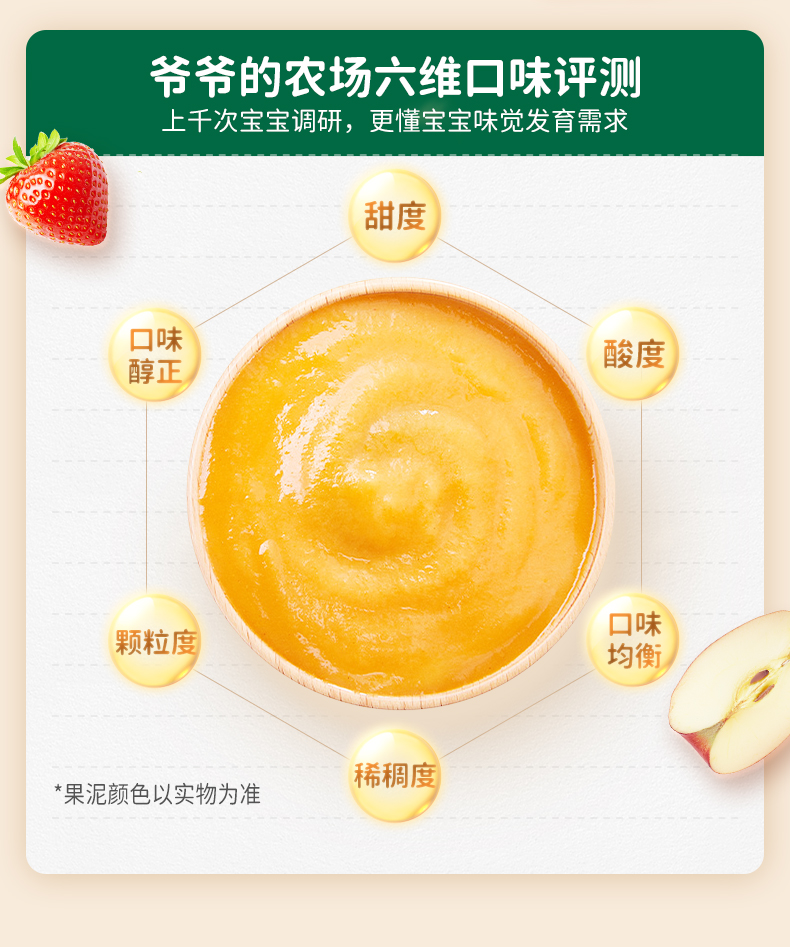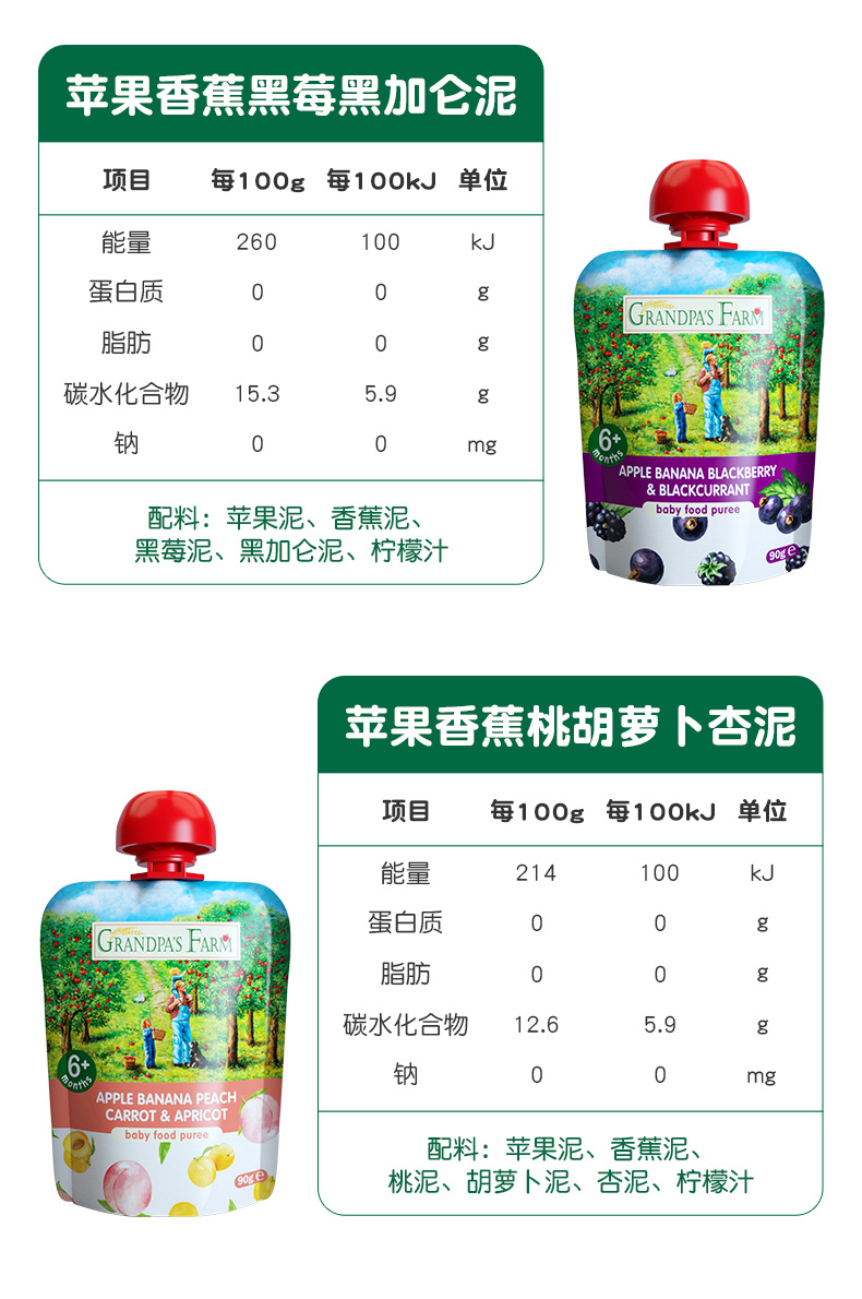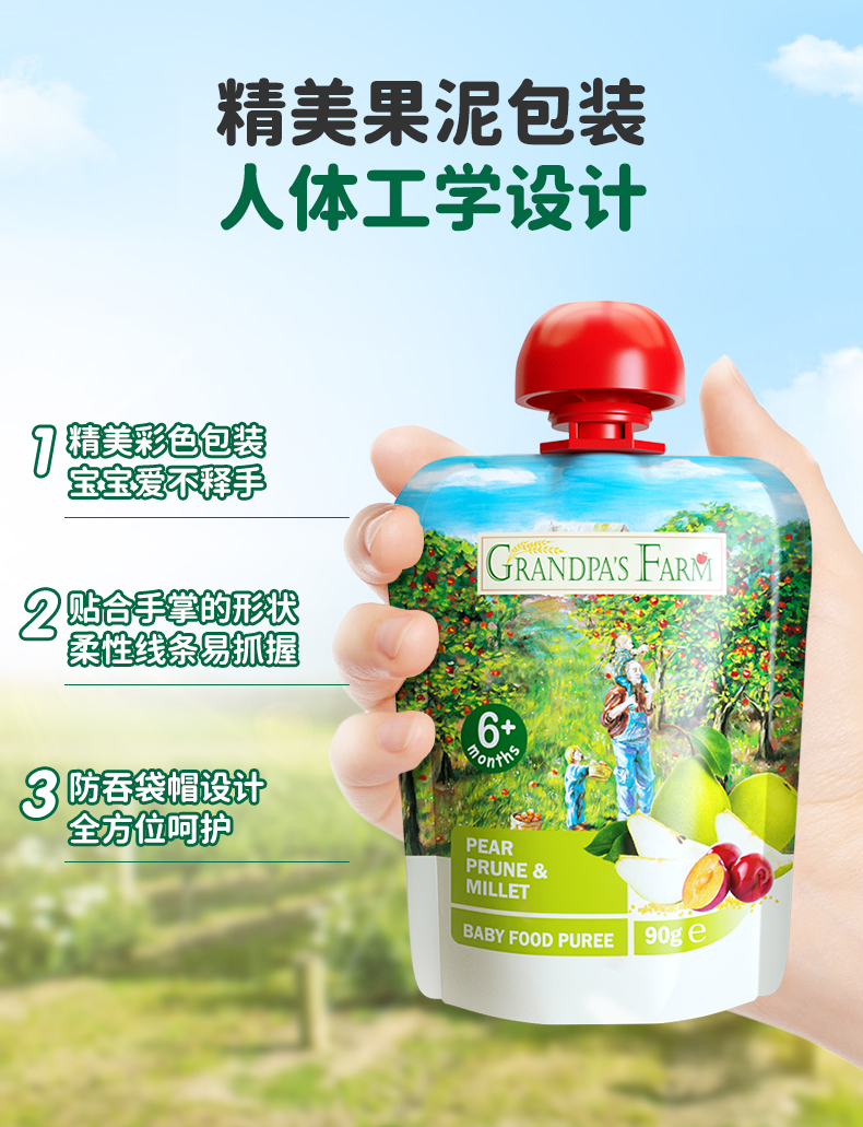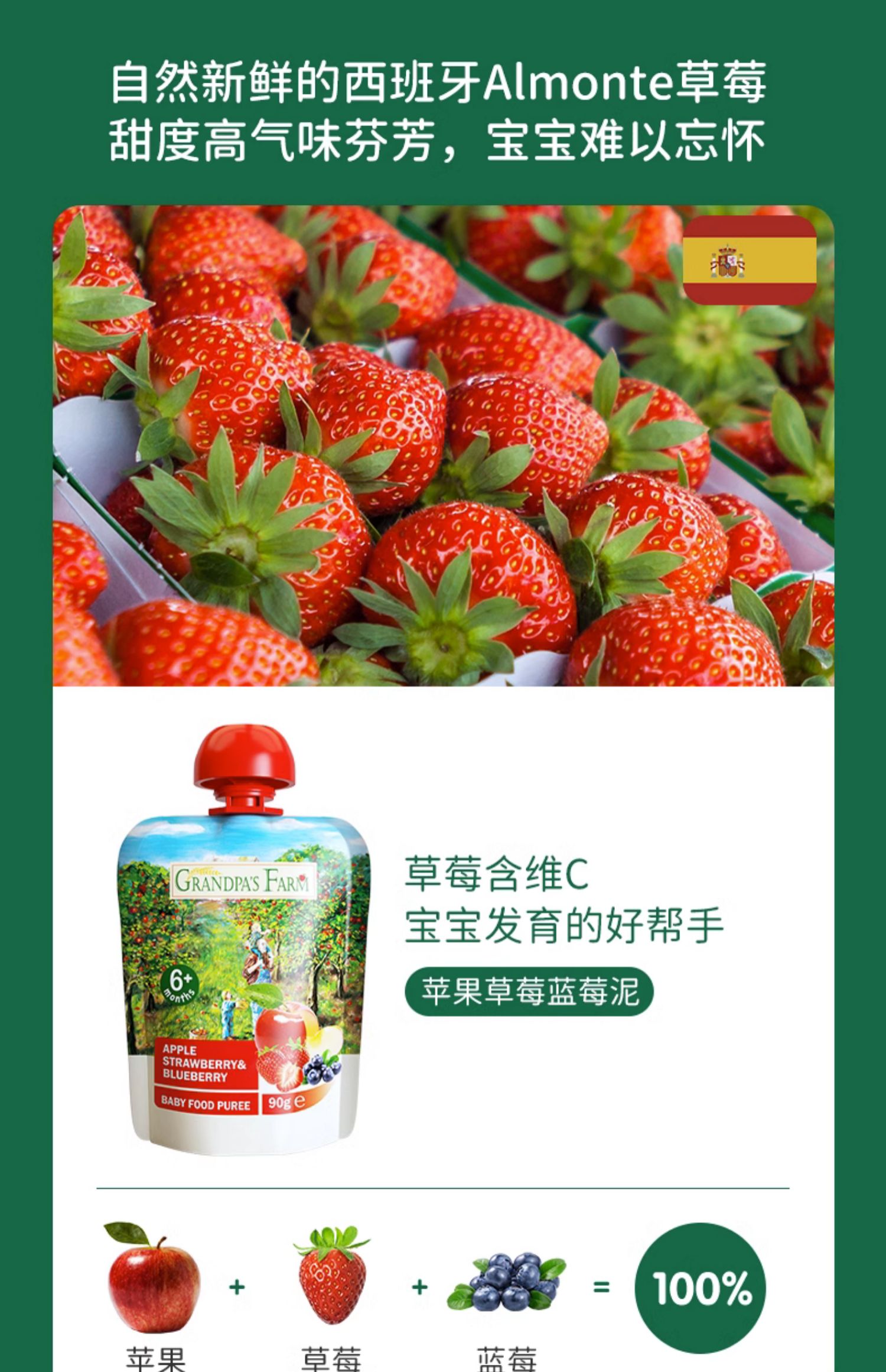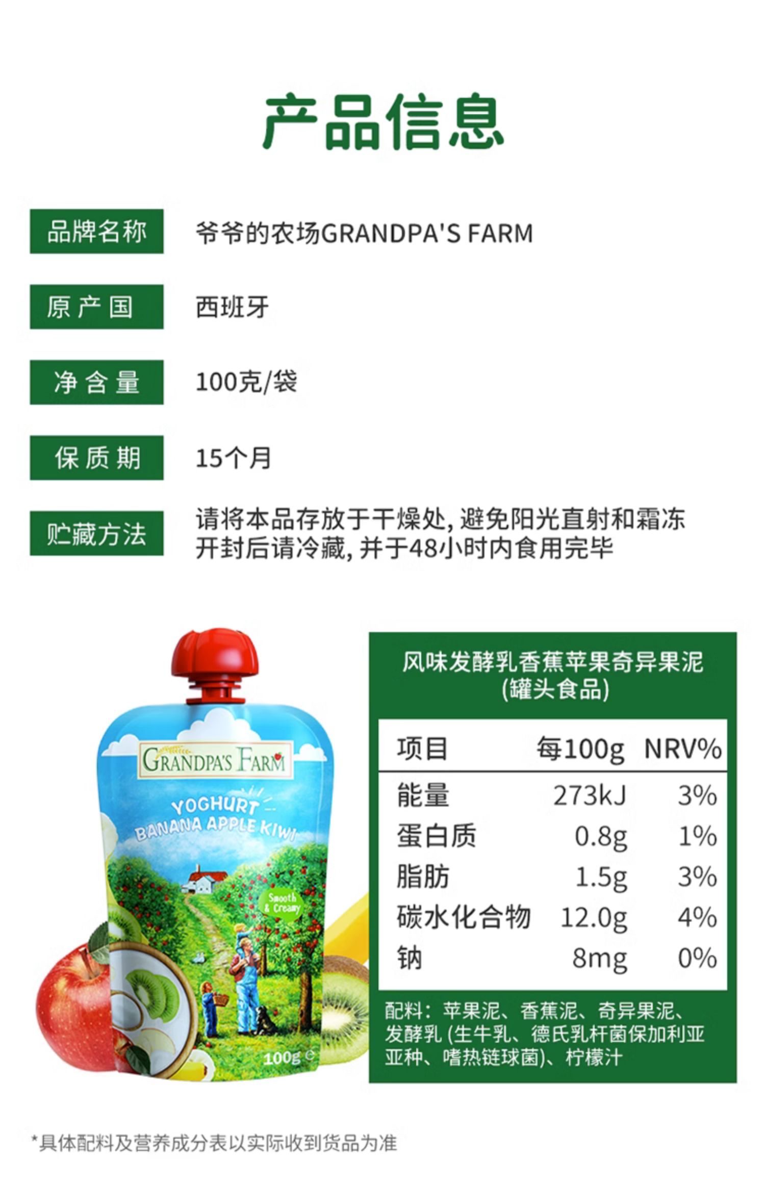 商品介绍:爷爷的农场!进口宝宝辅食多口味果泥*12袋