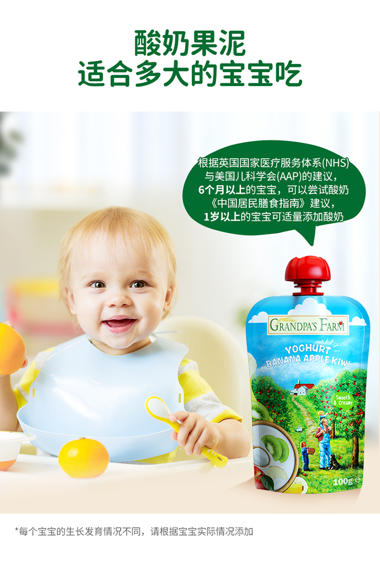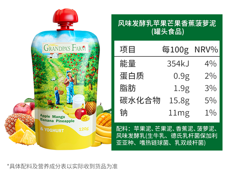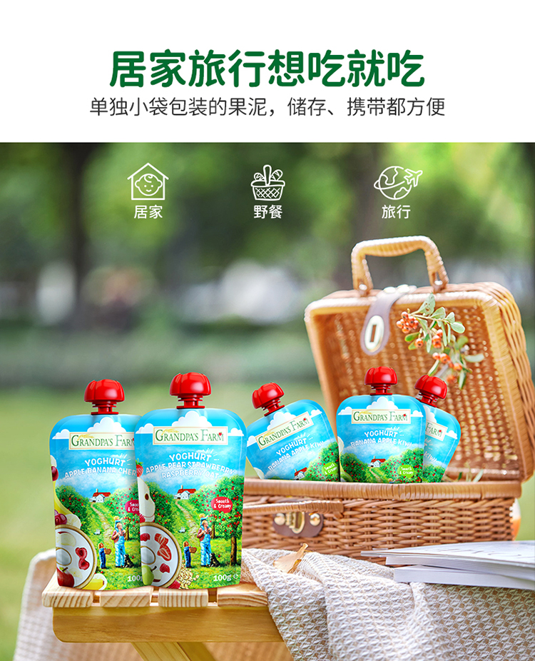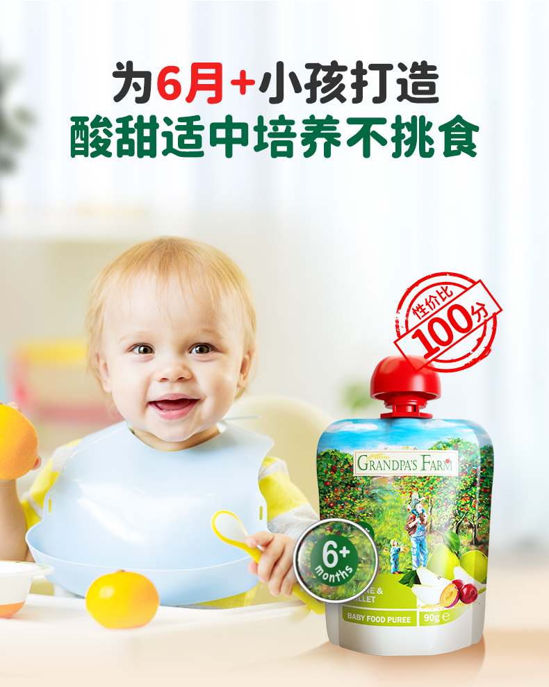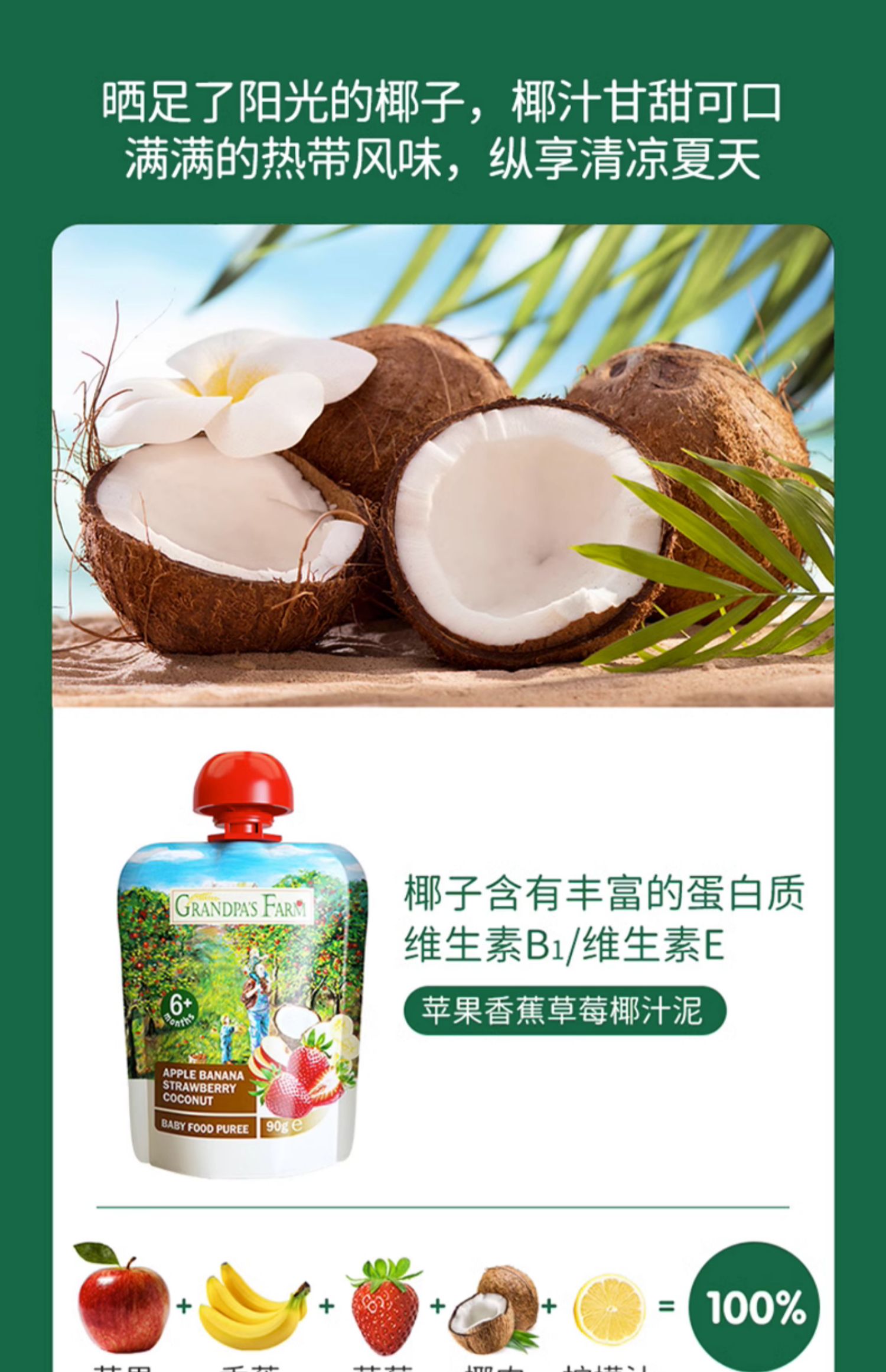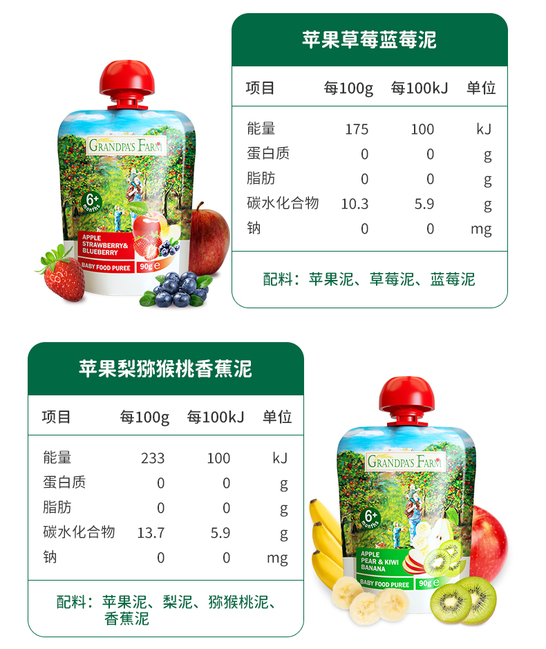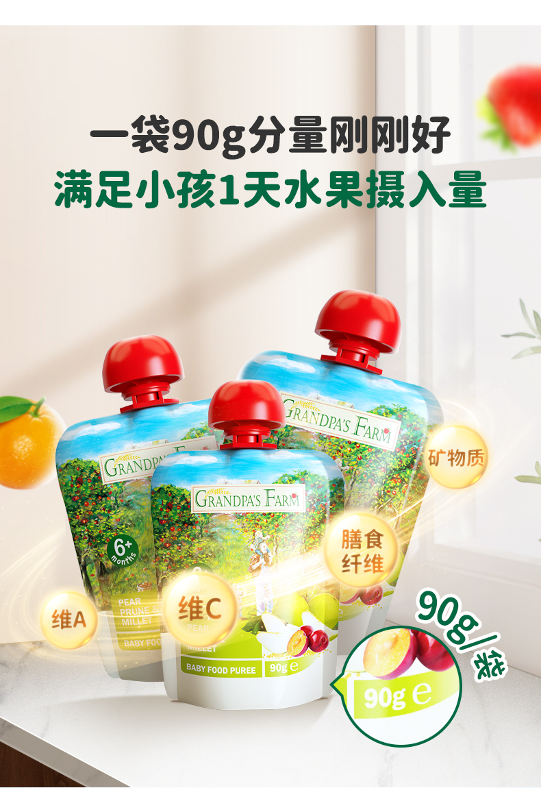 商品介绍:爷爷的农场!进口宝宝辅食多口味果泥*12袋