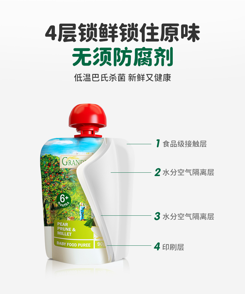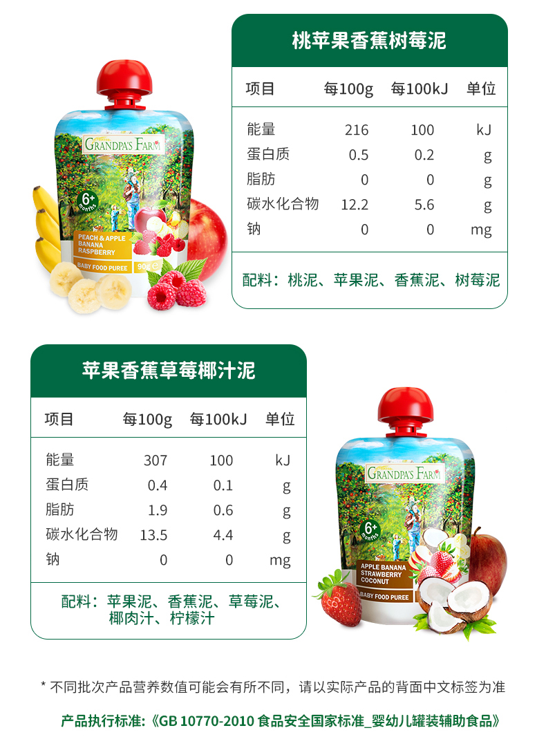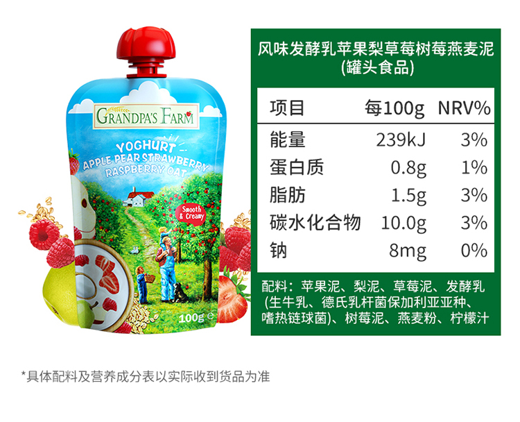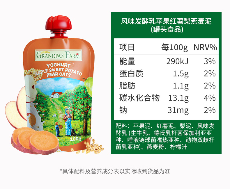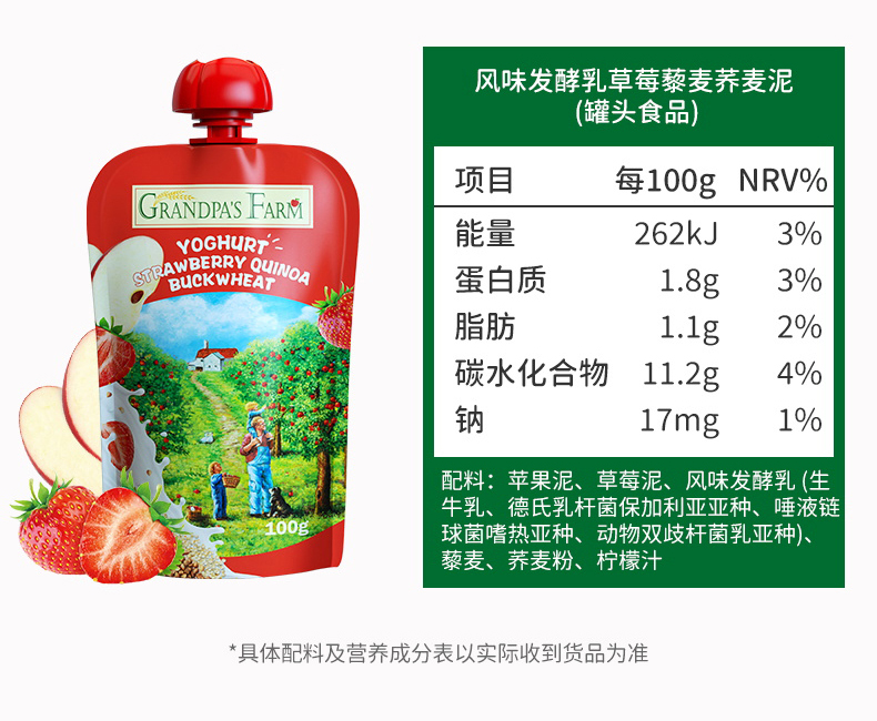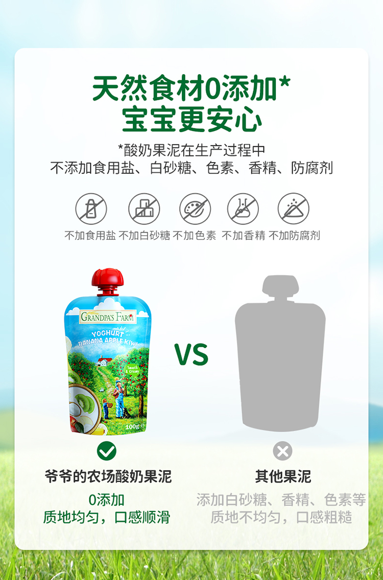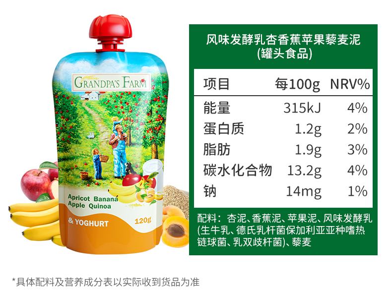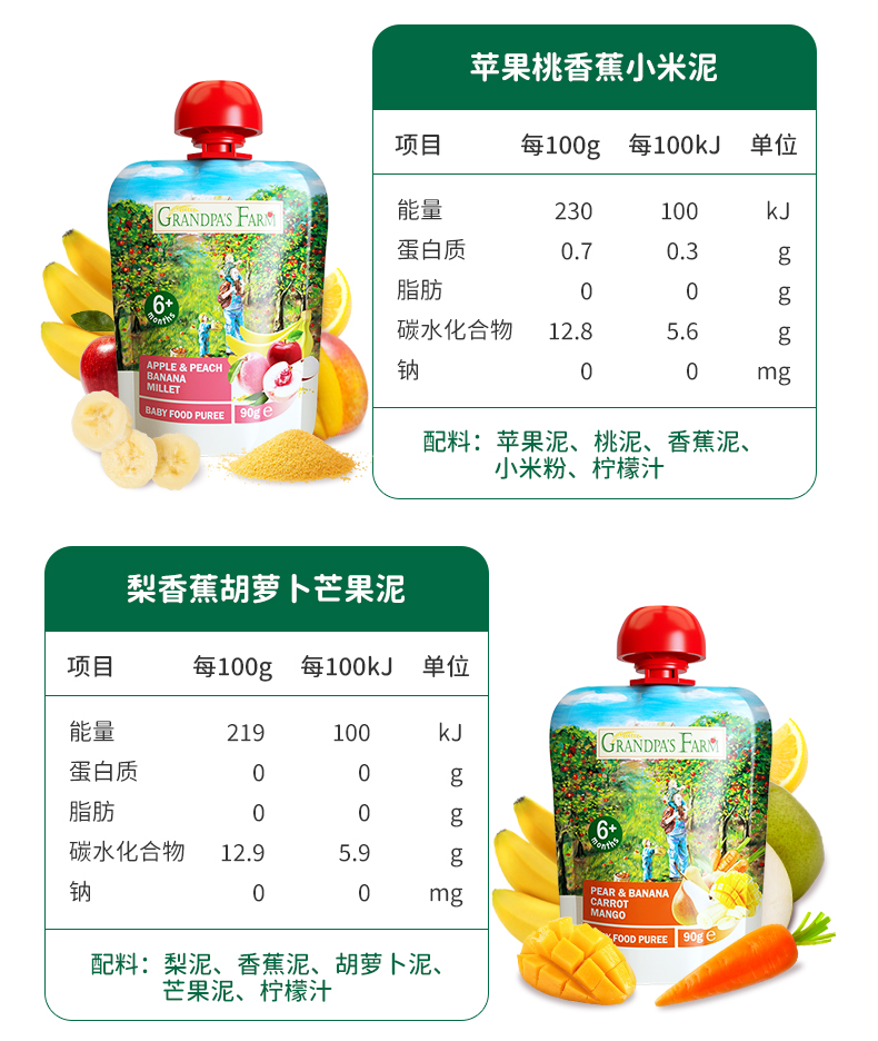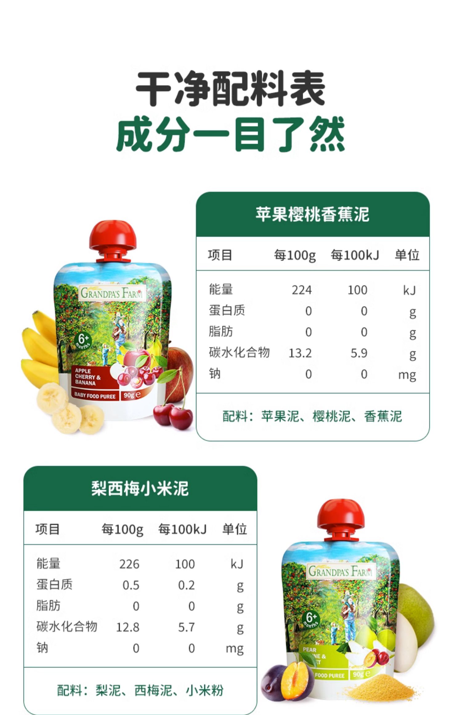 商品介绍:爷爷的农场!进口宝宝辅食多口味果泥*12袋