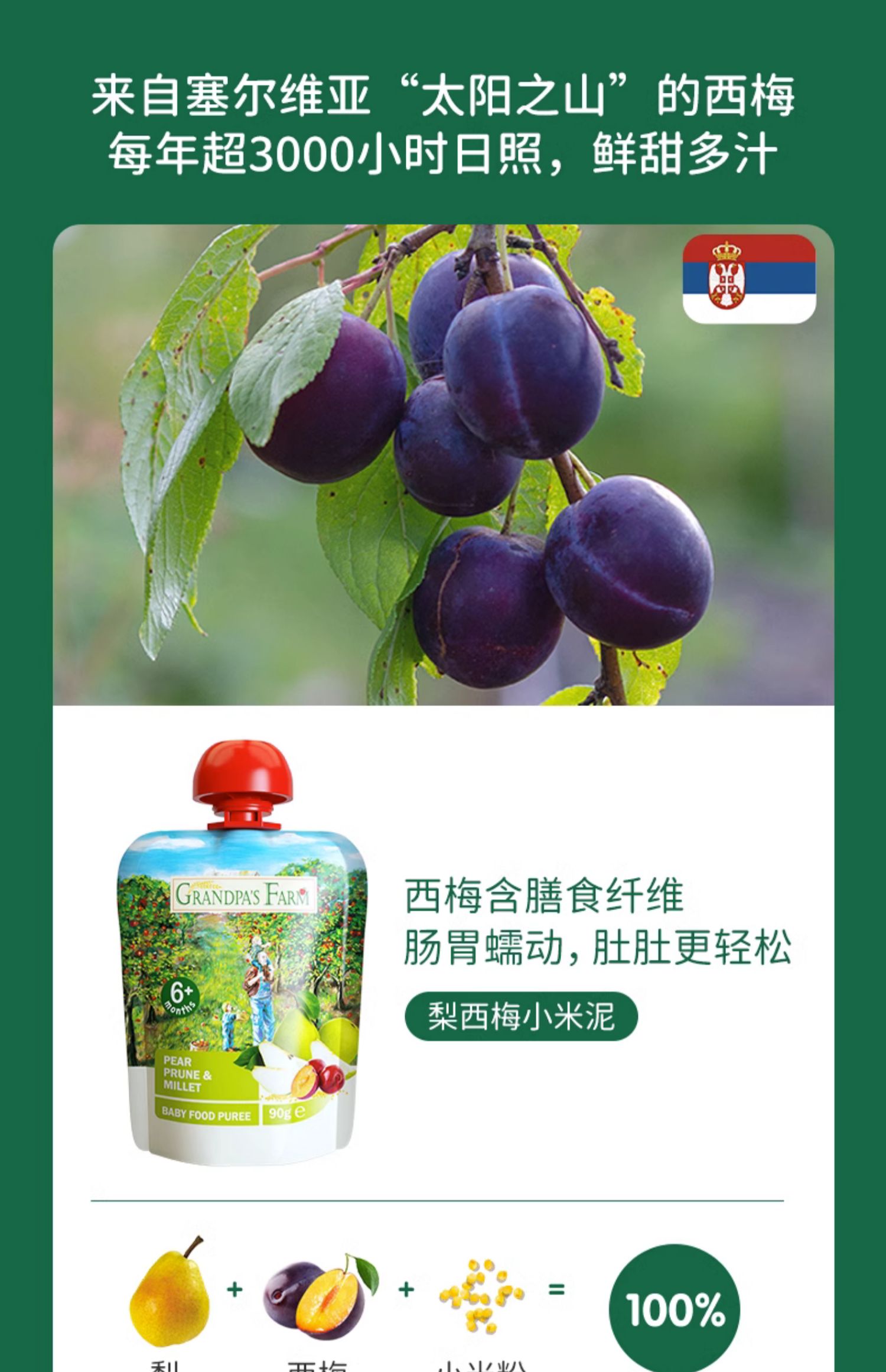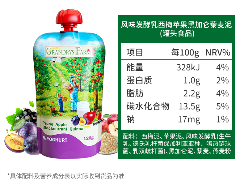 商品名称:爷爷的农场宝宝果泥婴幼儿无添加糖西梅儿童零食谷物酸奶果泥12袋