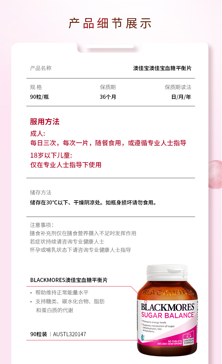 商品名称:【自营】澳洲BLACKMORES澳佳宝血糖平衡片90片含维生素及矿物质
