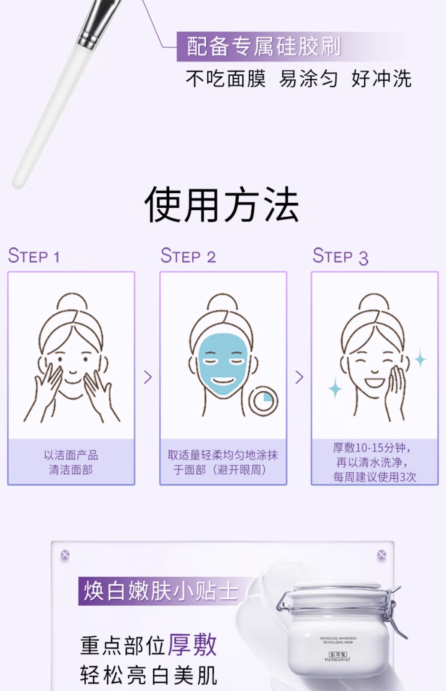 商品简介:买一罐到手2罐正装量敷1层白1层嫩1层,0刺激,淡斑匀净,去黄嫩白,15分钟“急救”暗沉肌,28天安心焕现白透润~