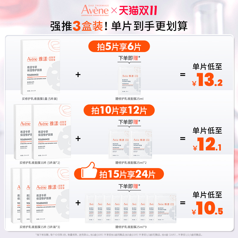商品名称:【双11现货速发】雅漾专研修护乳液面膜乳敷b5敏肌舒缓褪泛红贴片