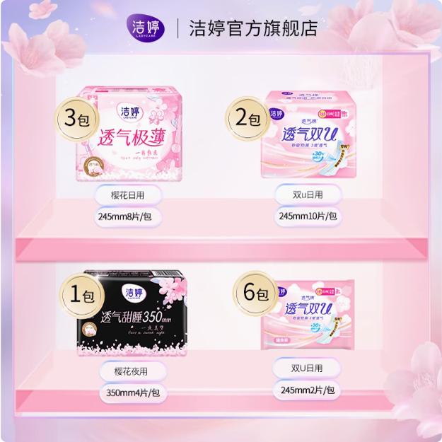 商品介绍:【100片】洁婷樱花系列卫生巾组合