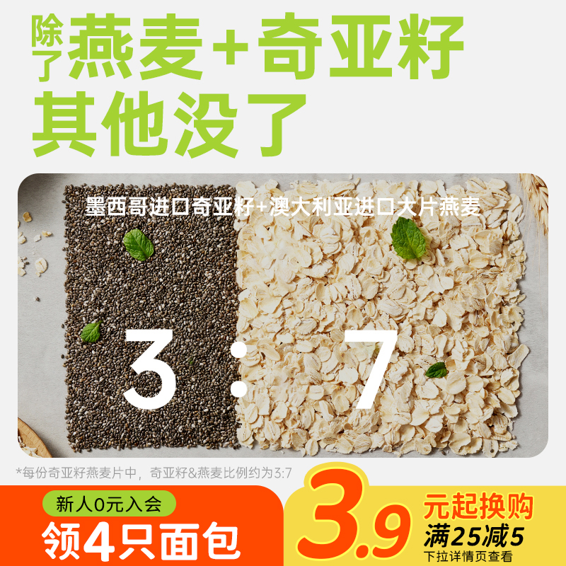 商品介绍:凑单11.6!田园主义奇亚籽纯燕麦片30g*7袋