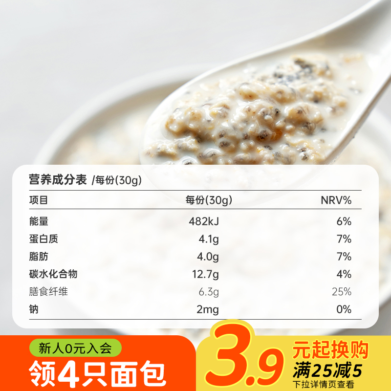 商品名称:田园主义奇亚籽纯燕麦片早餐即食冲饮品谷减无蔗糖燕麦脂饱腹代餐
