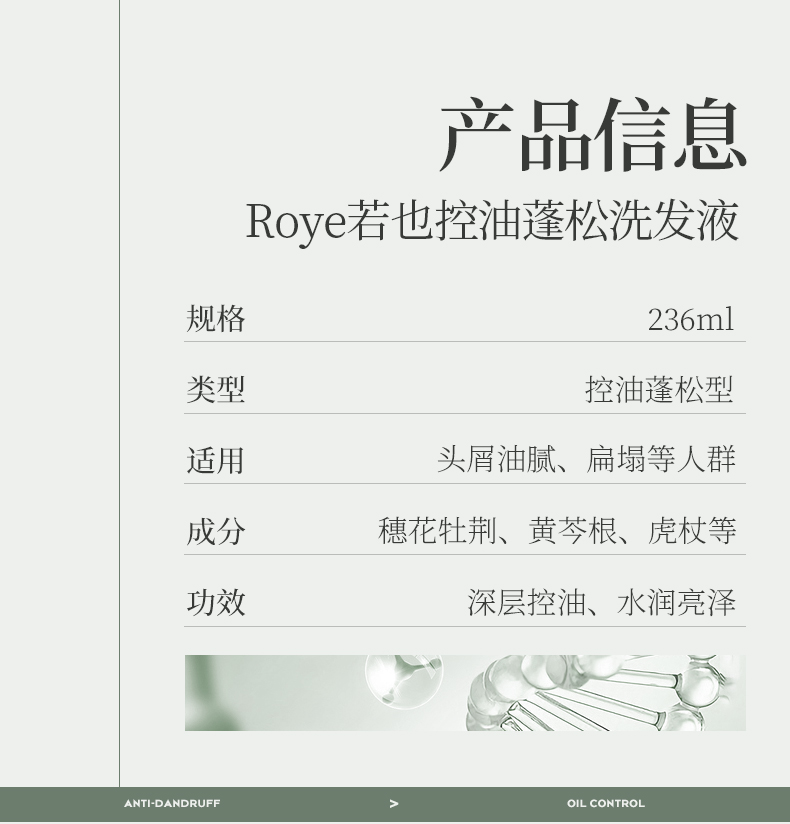 商品介绍:【双11付定】Roye若也控油蓬松洗发水洗头膏