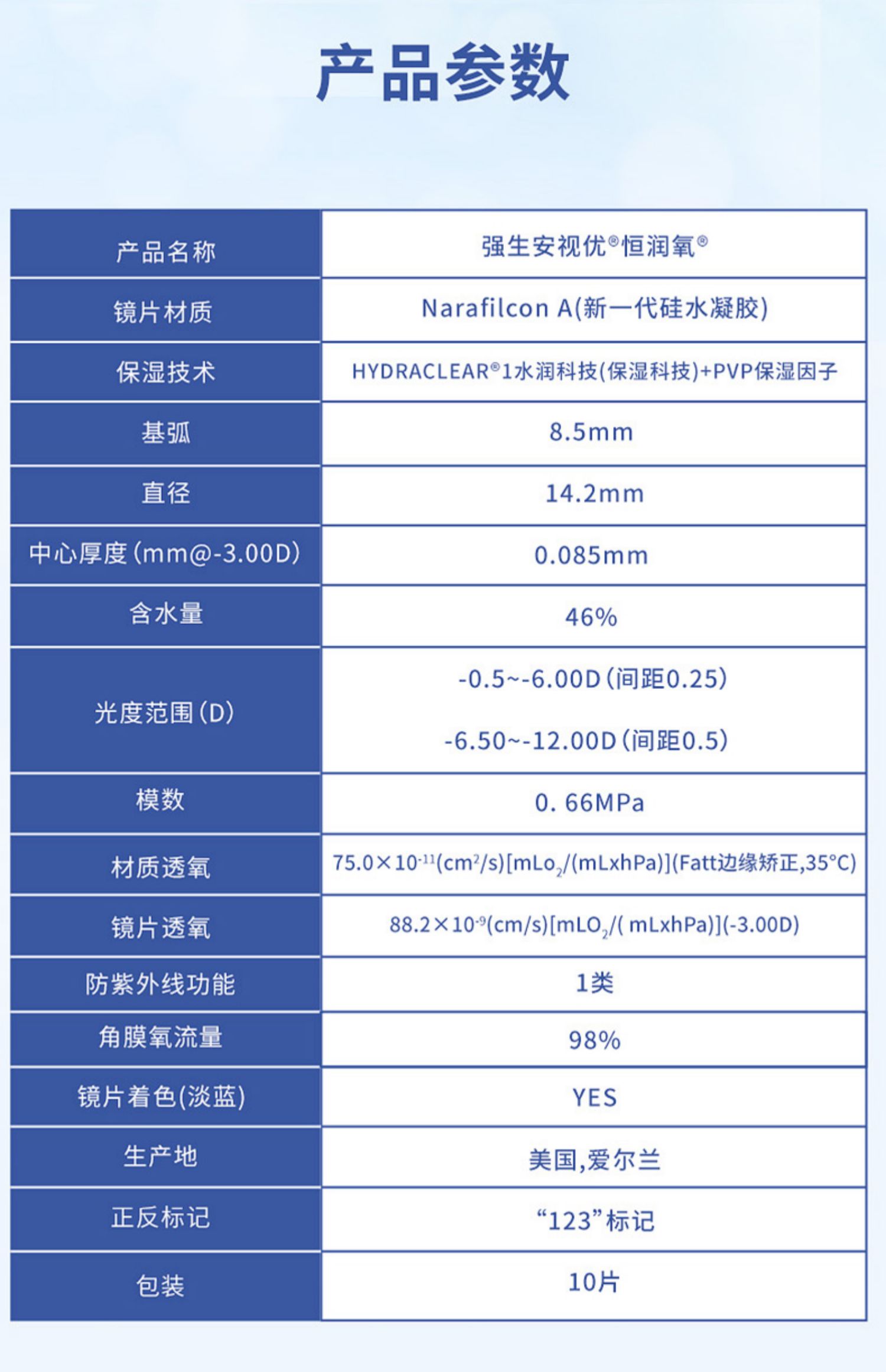 商品名称:强生安视优恒润氧近视隐形眼镜日抛10片硅水凝胶舒适透明官方进口