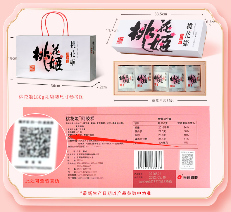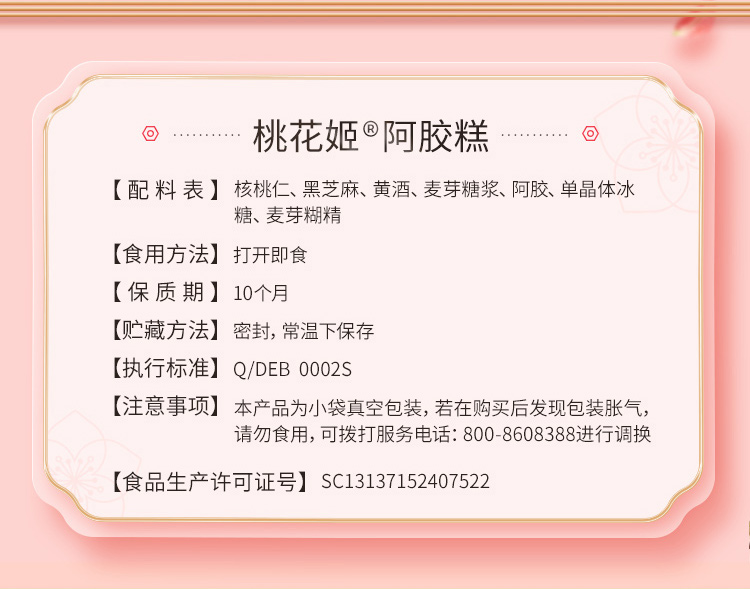 商品介绍:签到【礼袋装180g】桃花姬礼盒即食阿胶糕