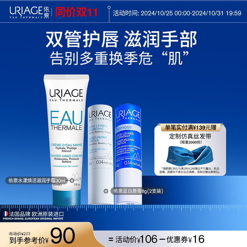 商品简介:【到手护手霜30g+蓝白唇膏4g*1支,】依泉柔润唇膏滋润护手霜套装,拯救秋冬干燥肌肤!现正火热促销中,保湿滋润,让你从头到脚都水润润!