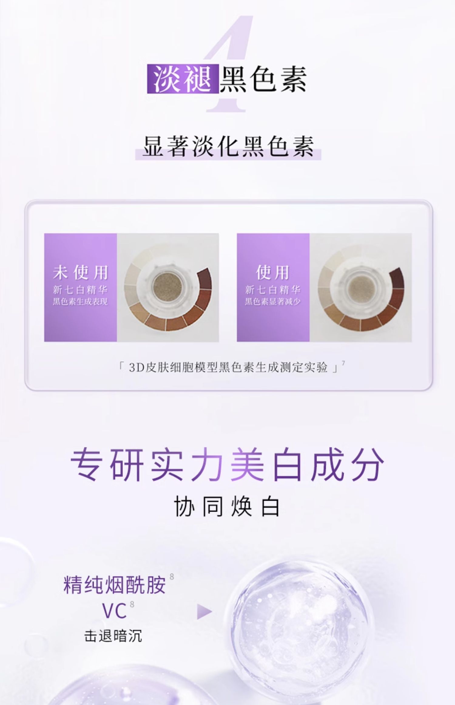 商品简介:【赠新七白嫩肤露10ml*7】【叠加津贴到手162.5元】精研安心焕亮成分,解锁焕亮法则,精纯烟酰胺+维生素C衍生物,击退暗沉,搭载新七白精华及多种有效成分,双效增润焕白肌肤~【退货运费险】