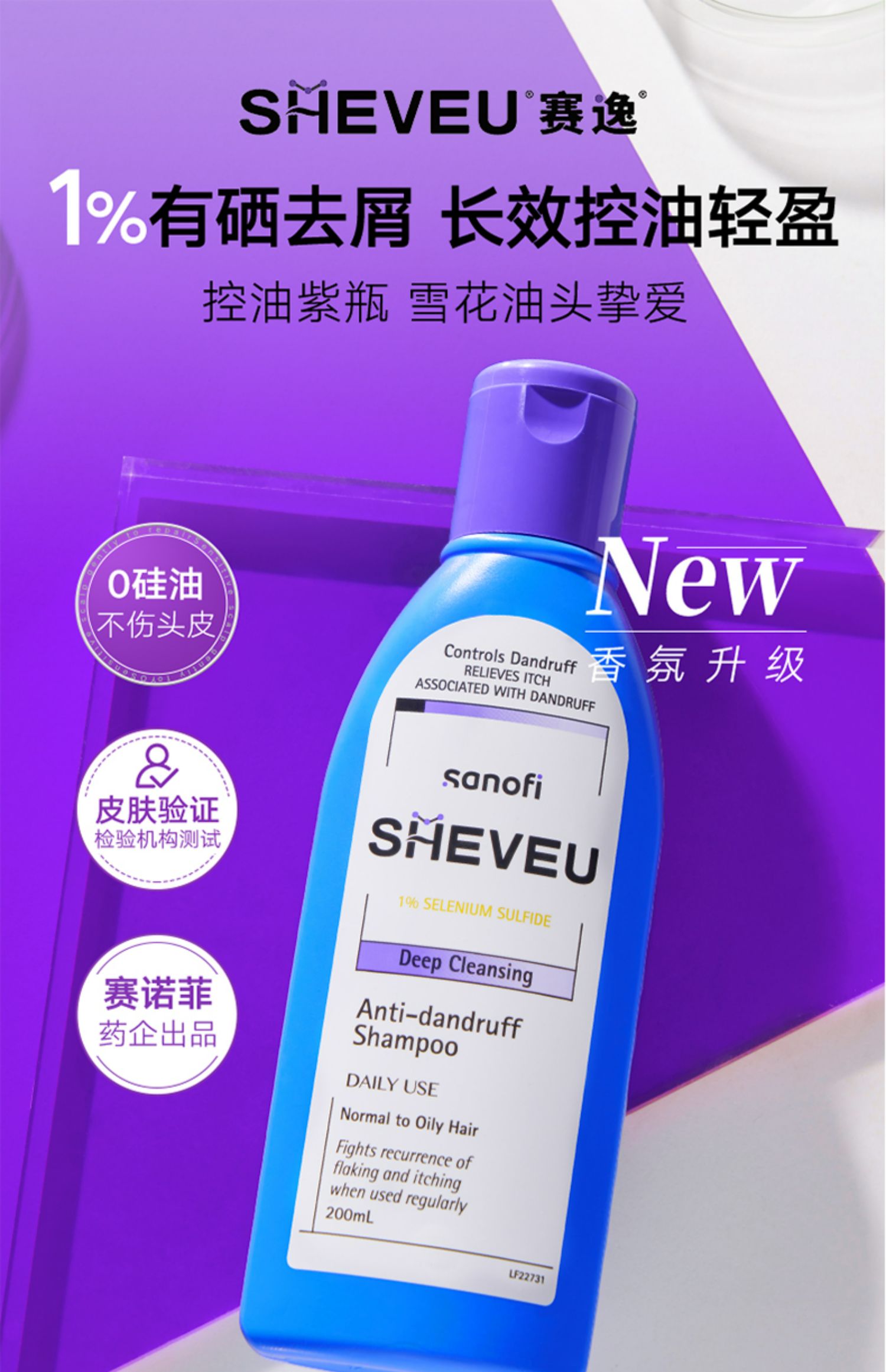 商品简介:【张静初推荐】sheveu赛逸去屑品牌!去屑!控油!止痒!蓬松!特别添加硫化硒,药用成分从根源处有效去除头屑!花果香调揉进发丝,给你带来愉悦的洗护体验~