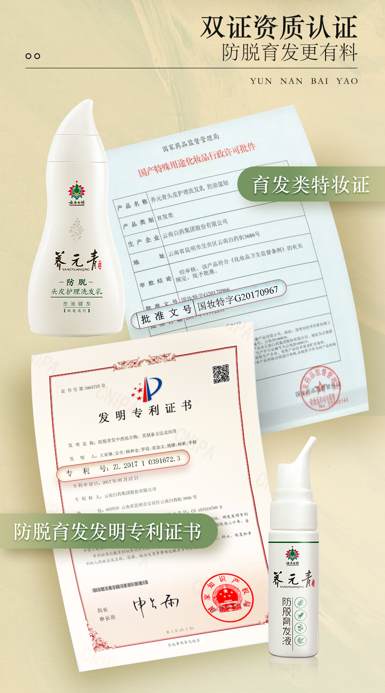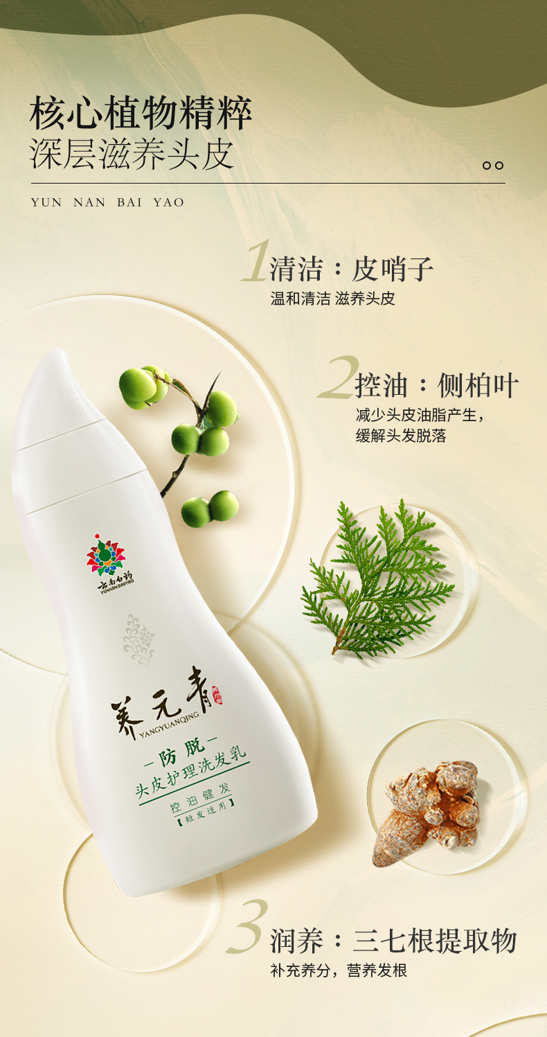 商品介绍:【拍3件】云南白药养元青防脱洗发水270ml