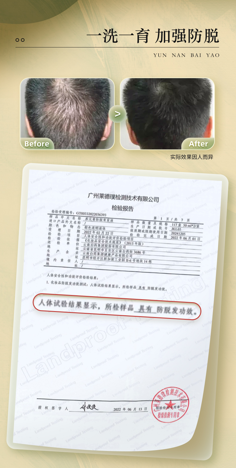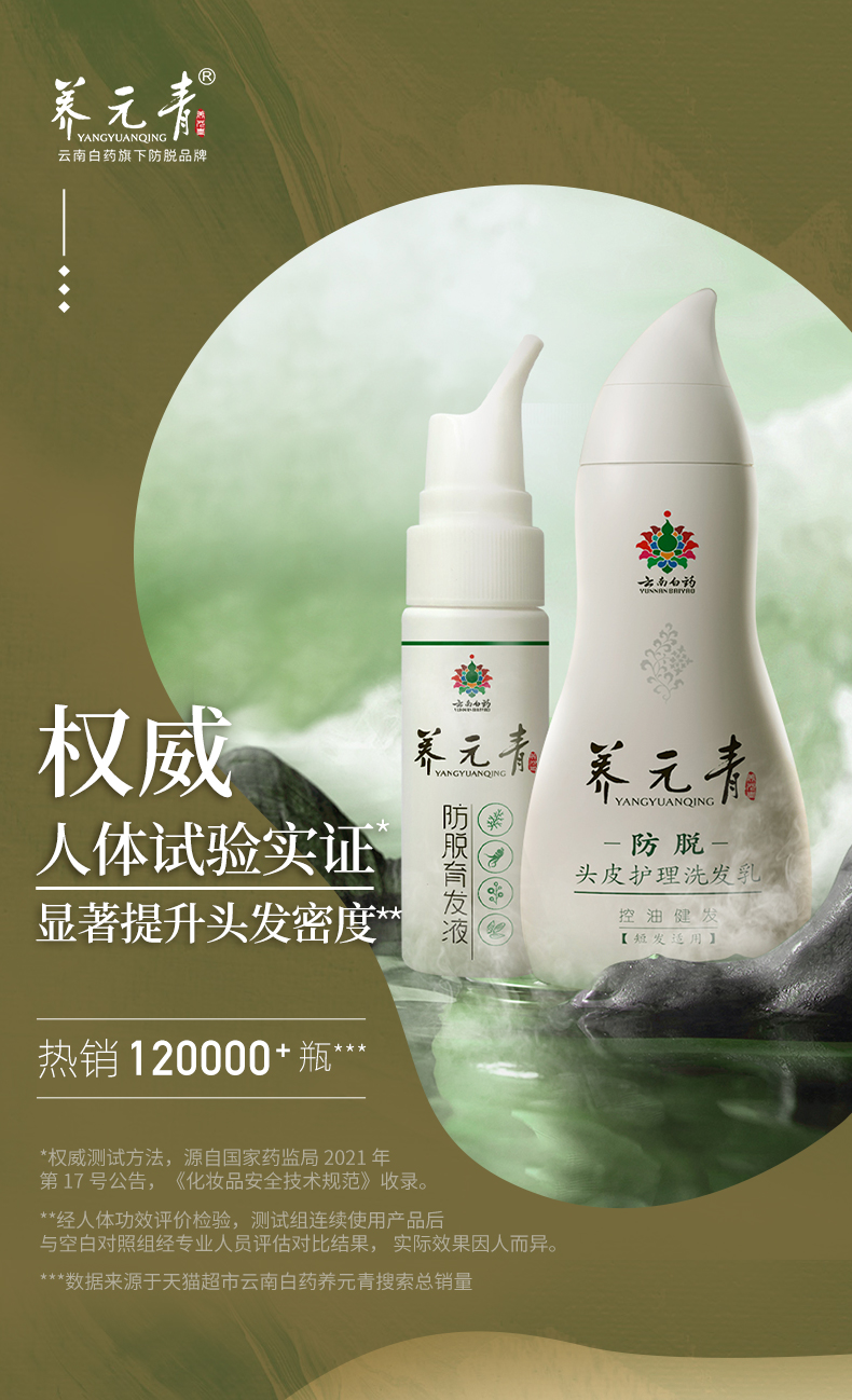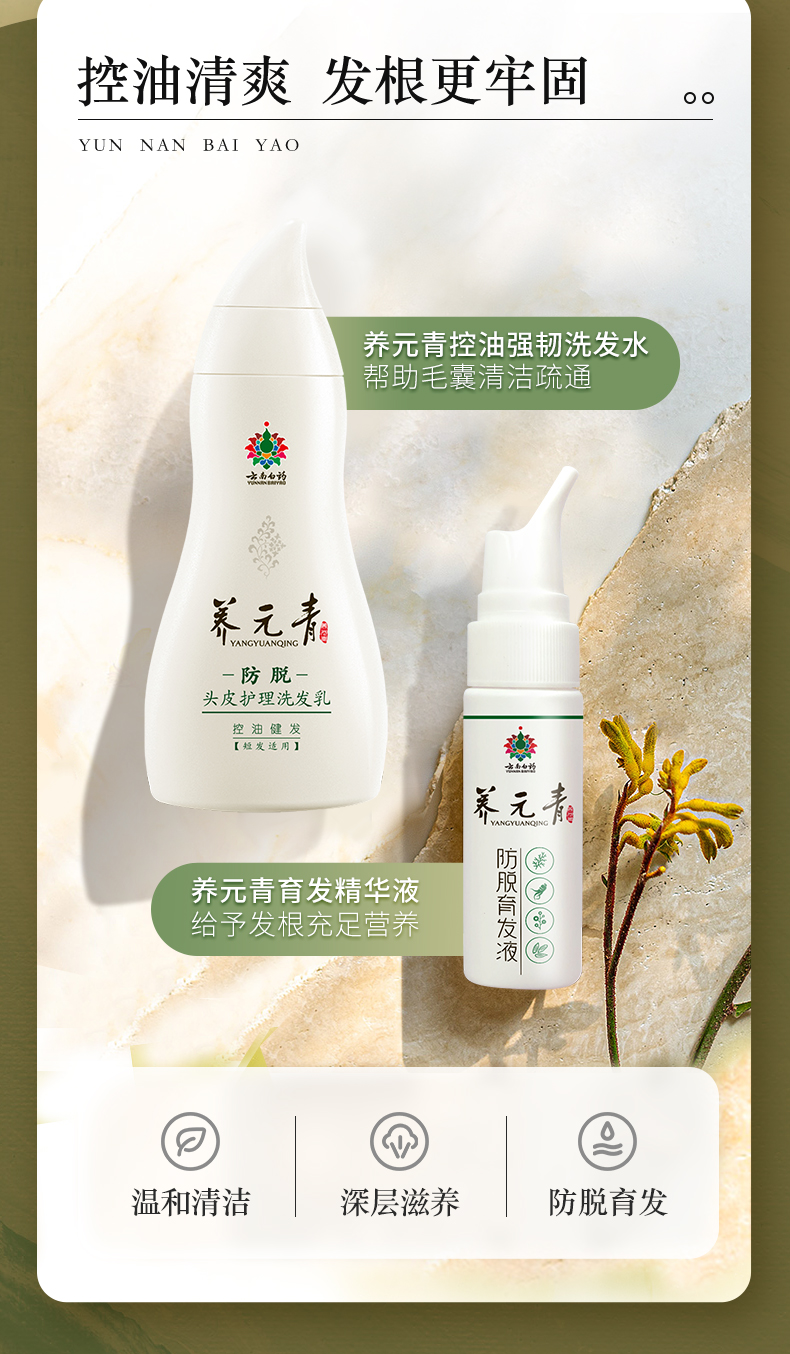 商品名称:云南白药养元青控油防脱洗发水育发液套装270ml男士旅行官方正品