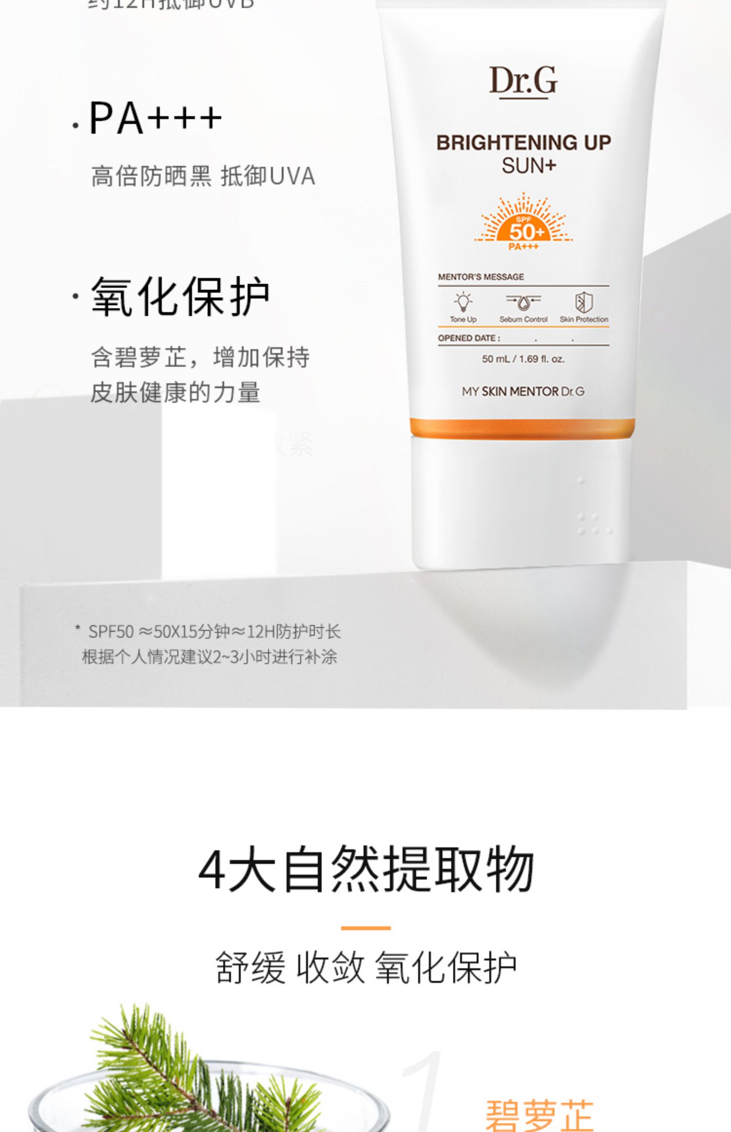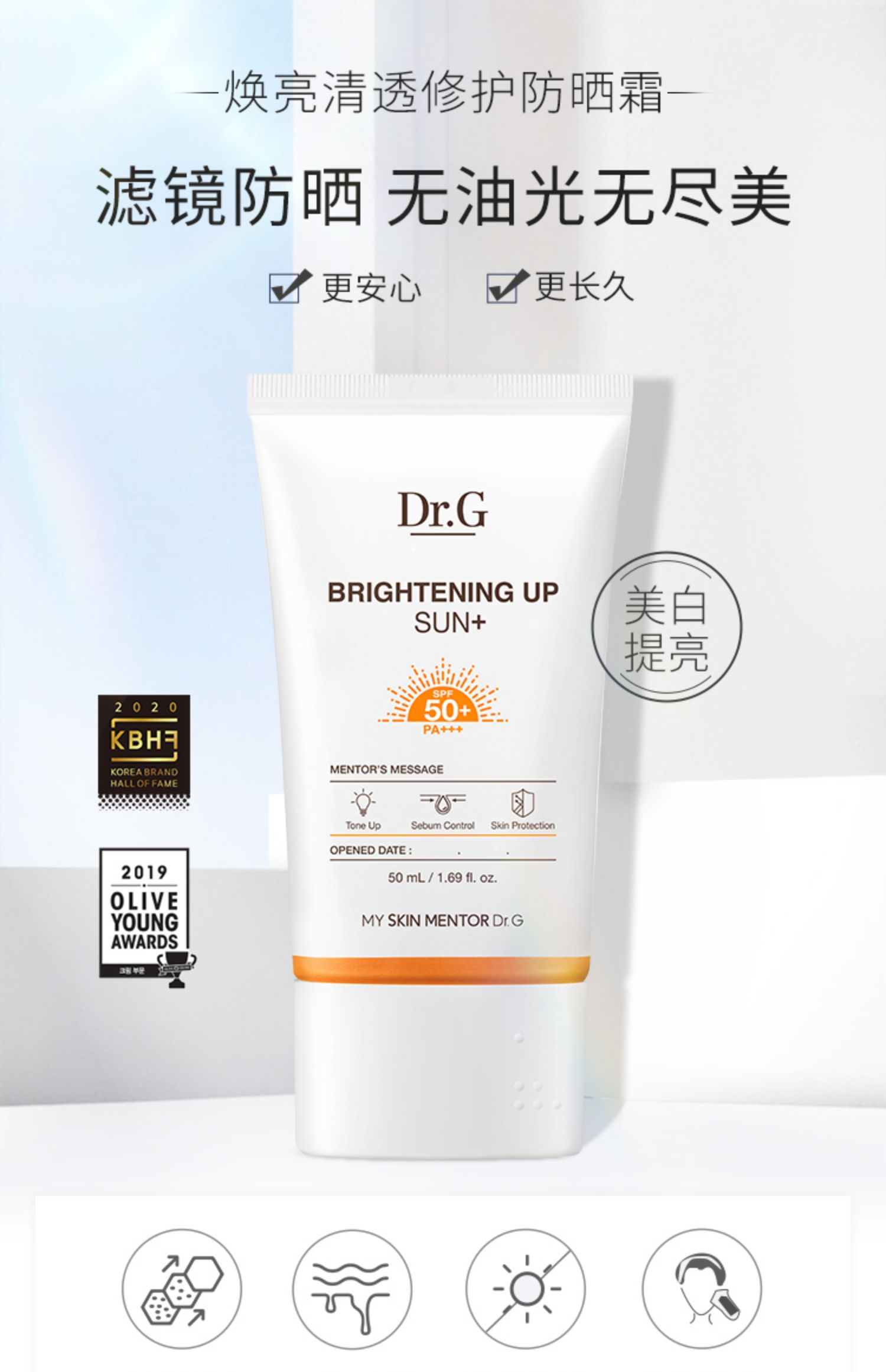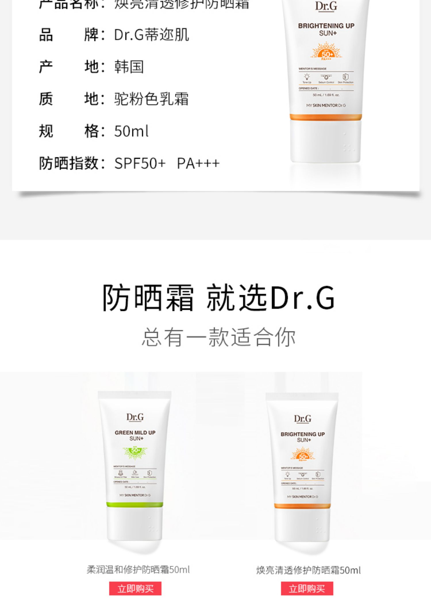 商品名称:Dr.G蒂迩肌焕亮防晒霜春夏控油清透提亮隔离防紫外线隔离二合一