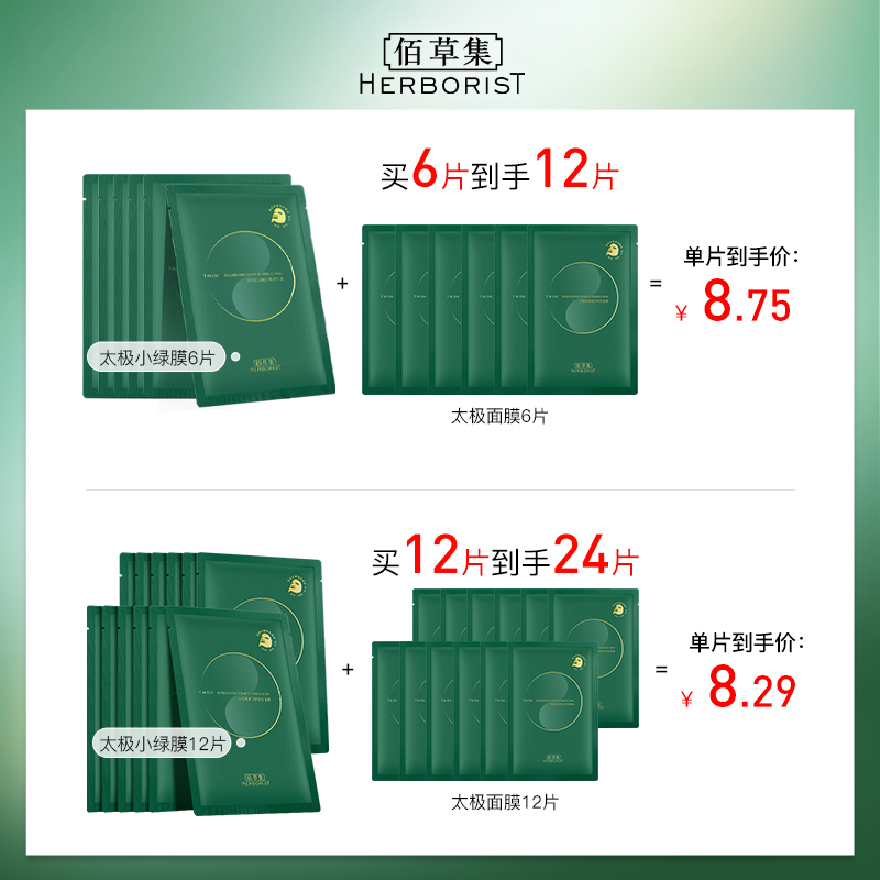 商品介绍:佰草集太极啵啵小绿膜修护紧致保湿面膜12片