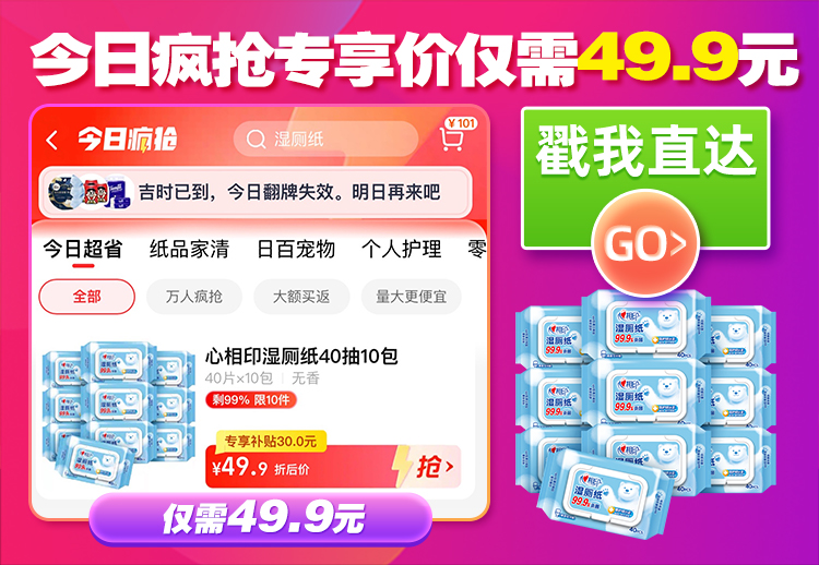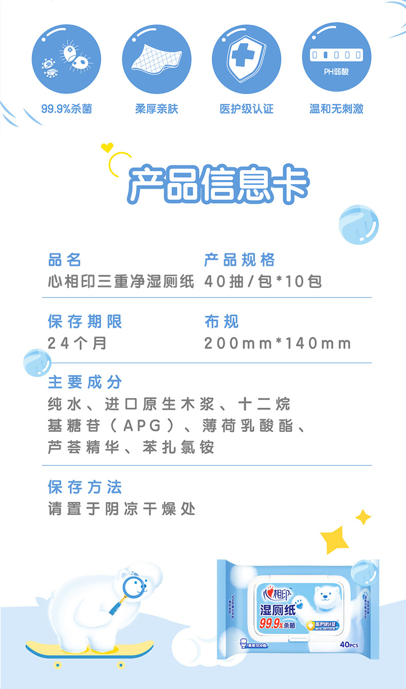 商品名称:心相印湿厕纸便携装40片10包杀菌湿纸巾加厚擦屁屁经期可用