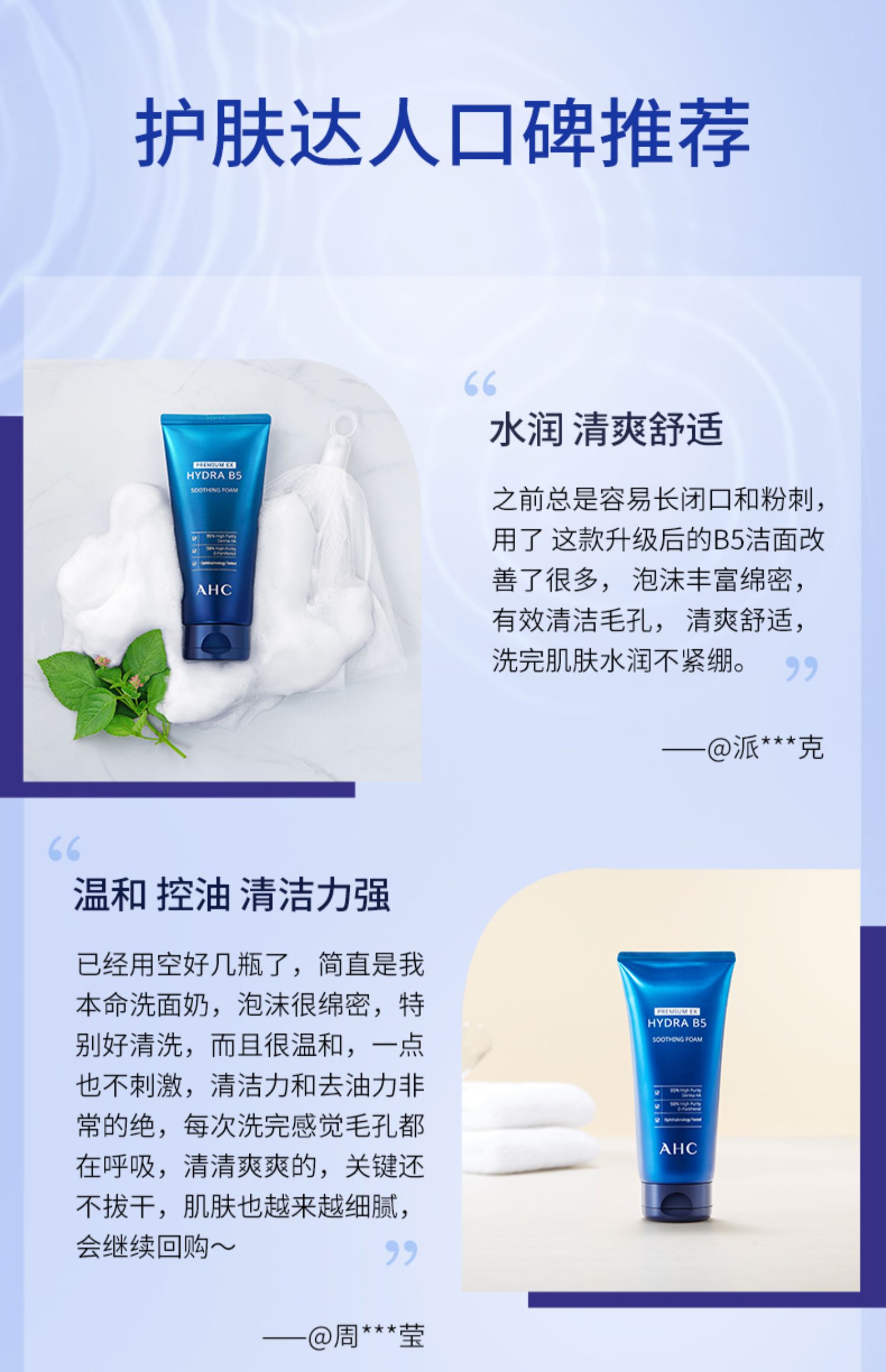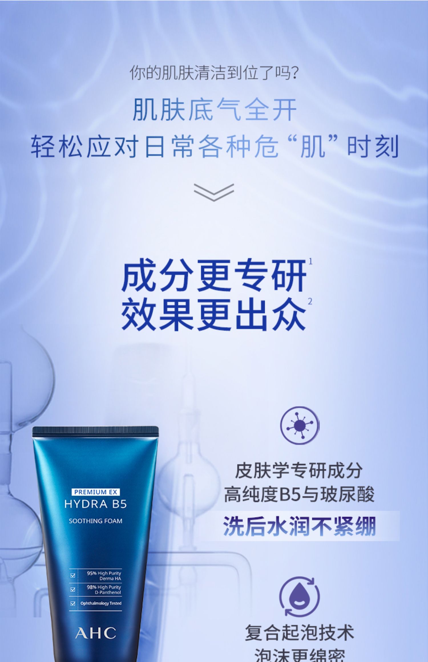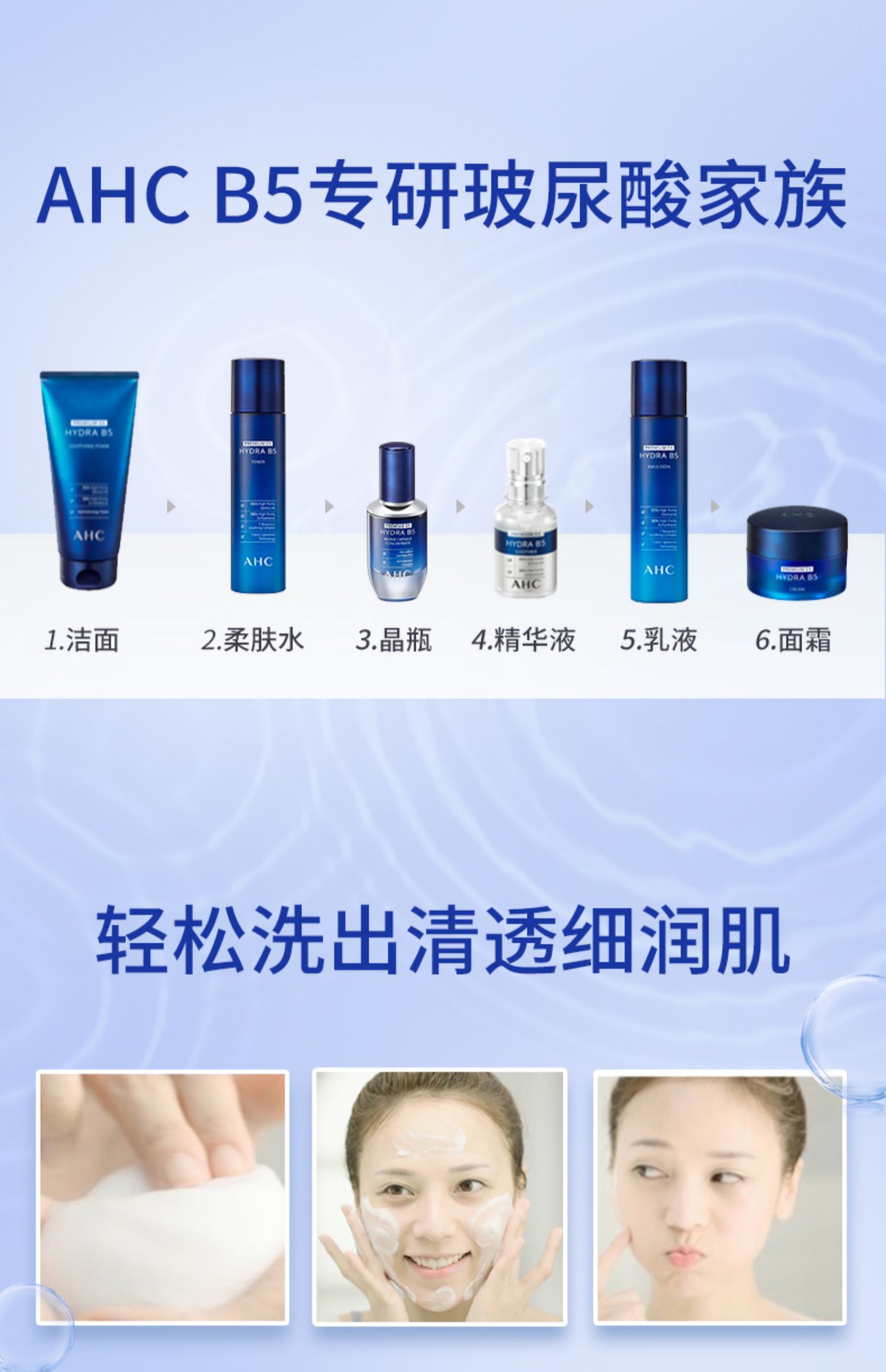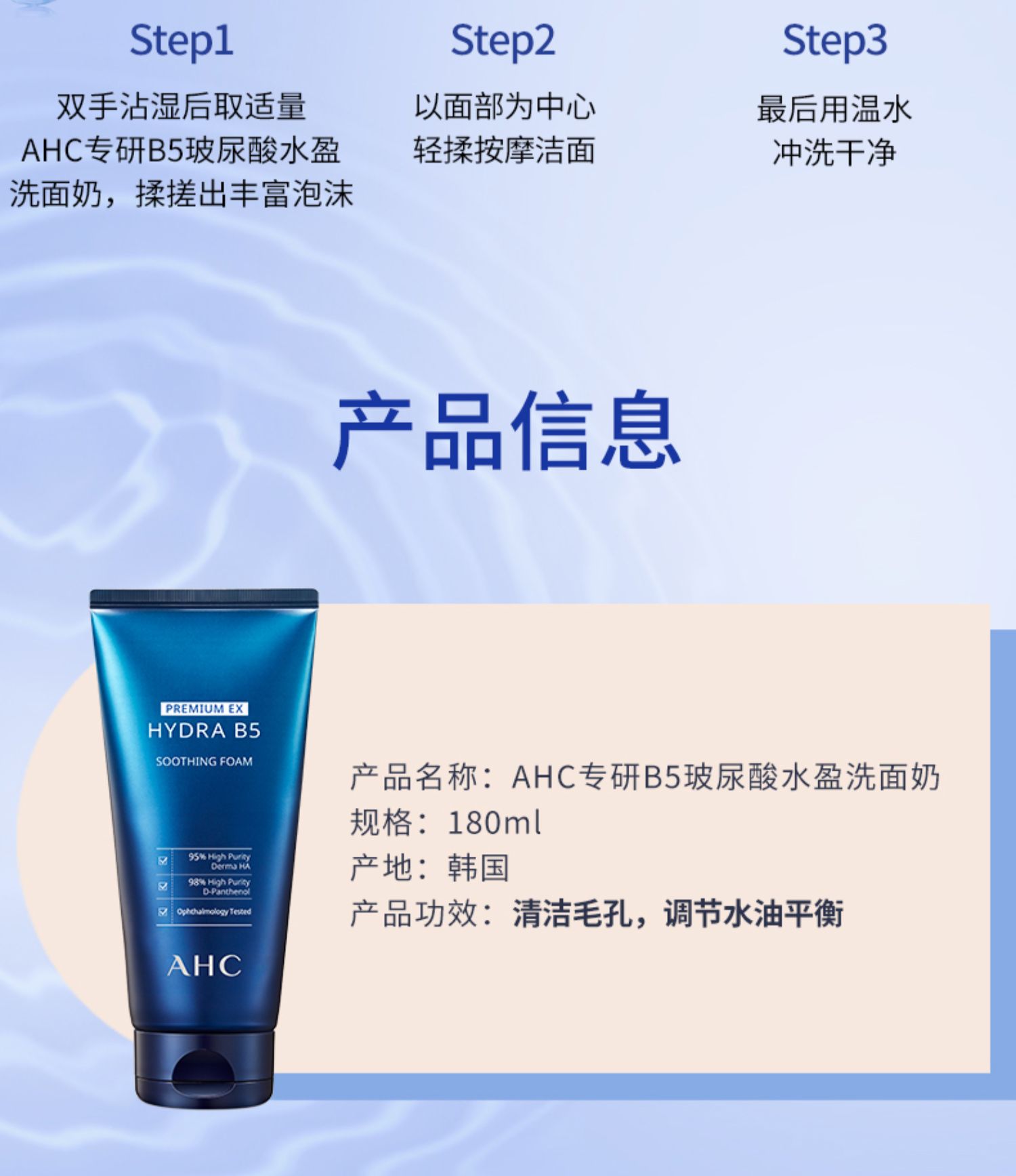 商品介绍:送30ml*2!AHC官旗B5玻尿酸洁面180ml*2