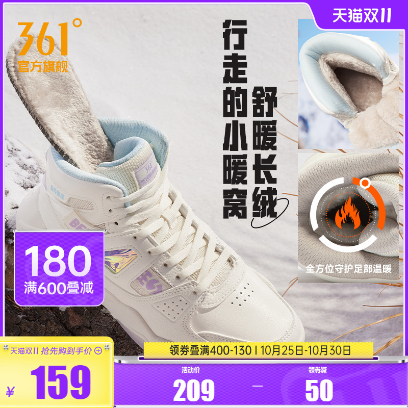 商品名称:361高帮板鞋2024冬季休闲鞋子加绒保暖二棉鞋厚底增高运动鞋女鞋