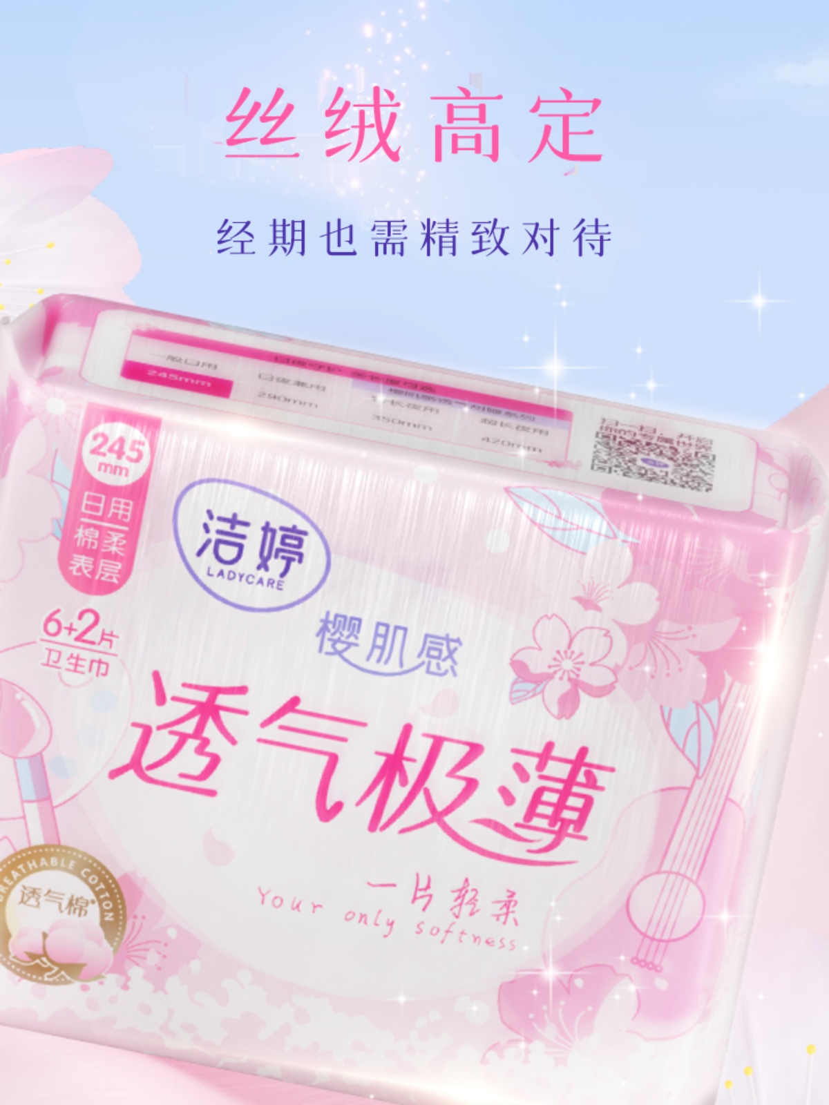 商品名称:洁婷樱花系列透气超薄棉柔日夜组合卫生巾姨妈巾旗舰店官网正品A