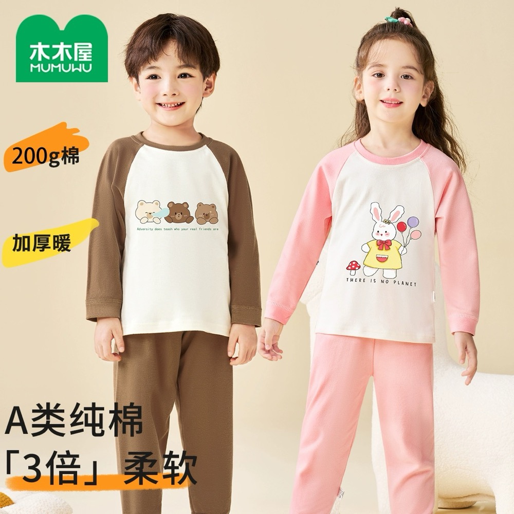 商品名称:木木屋婴儿秋衣秋裤套装高腰护肚儿童内衣套装宝宝分体睡衣秋装