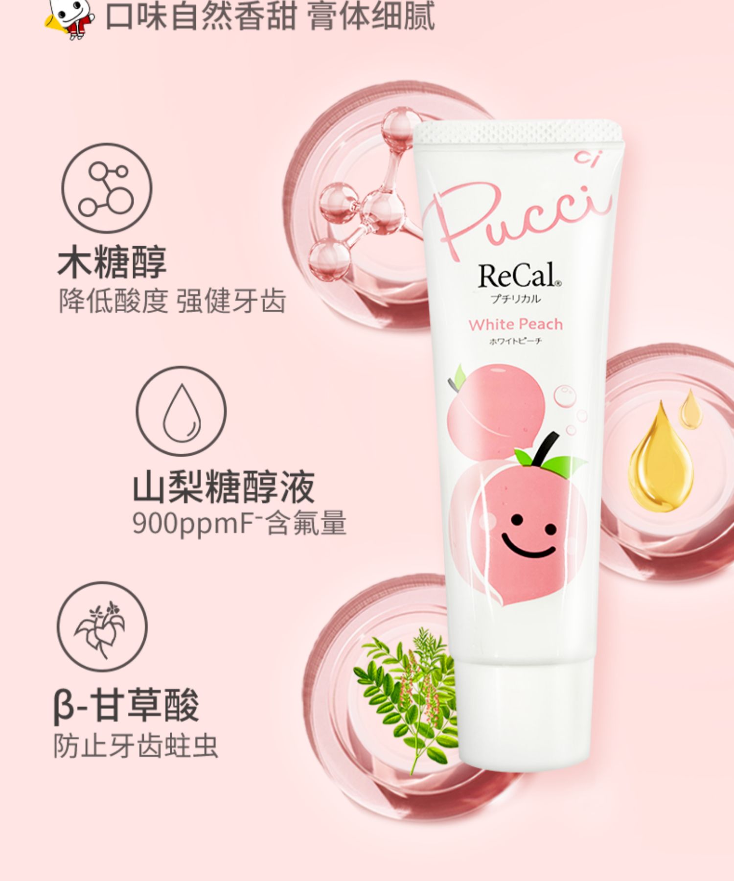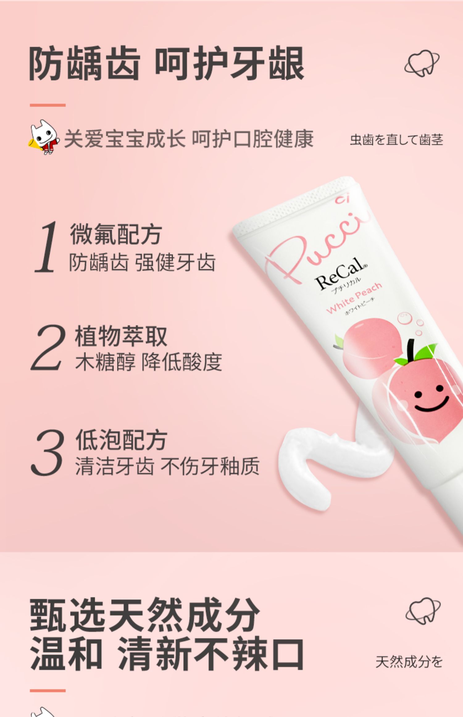 商品介绍:【3支】水果白桃味儿童牙膏