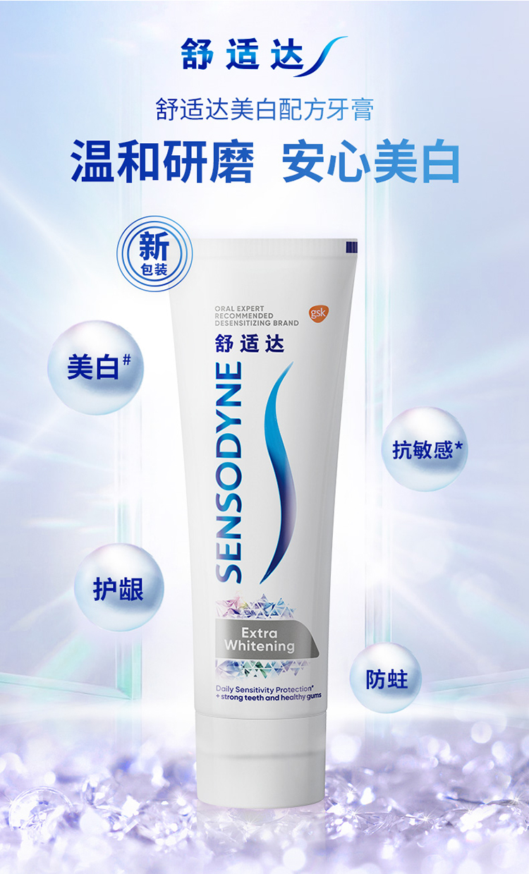 商品介绍:【舒适达】美白抗敏牙膏100g*3支