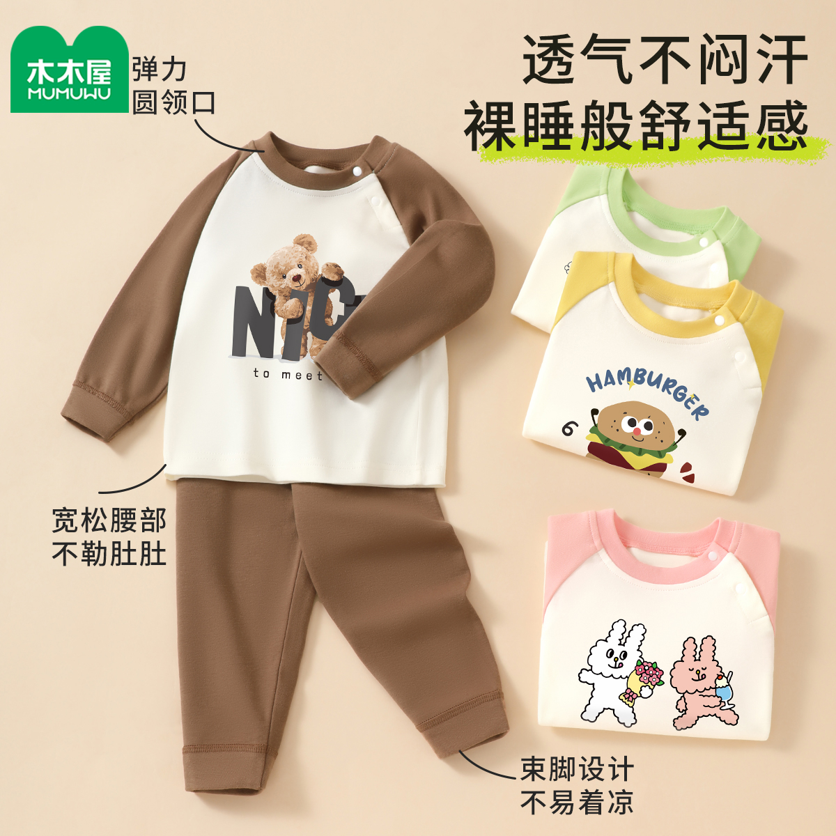商品名称:木木屋婴儿秋衣秋裤套装高腰护肚儿童内衣套装宝宝分体睡衣秋装