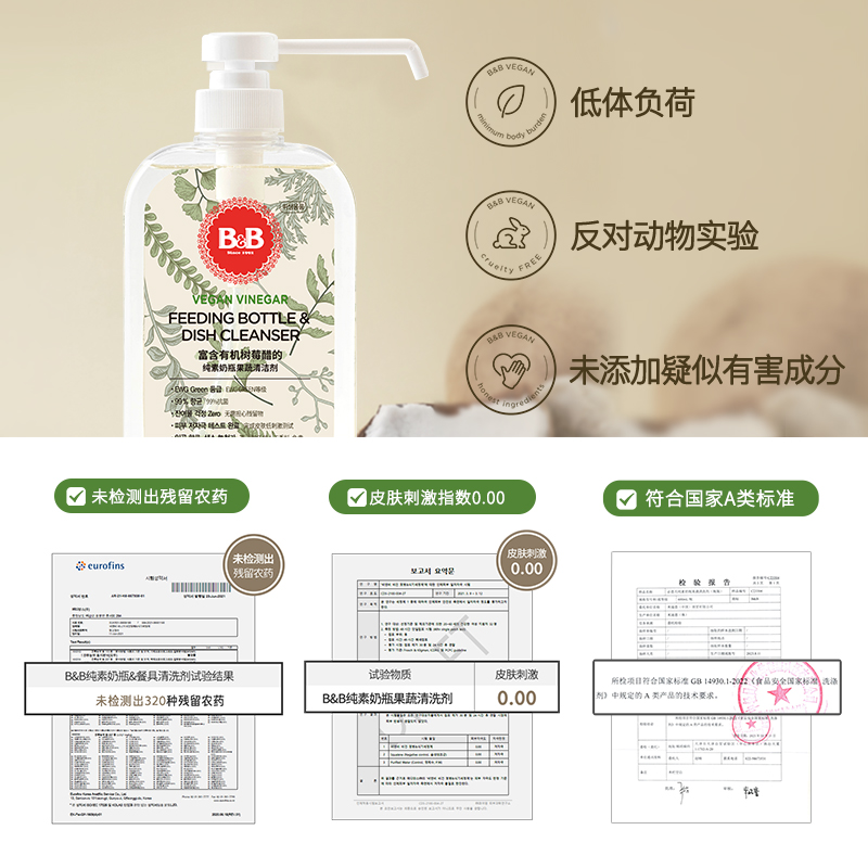 商品名称:B&B保宁韩国婴儿专用纯素无香奶瓶果蔬清洗剂宝宝餐具洗洁精
