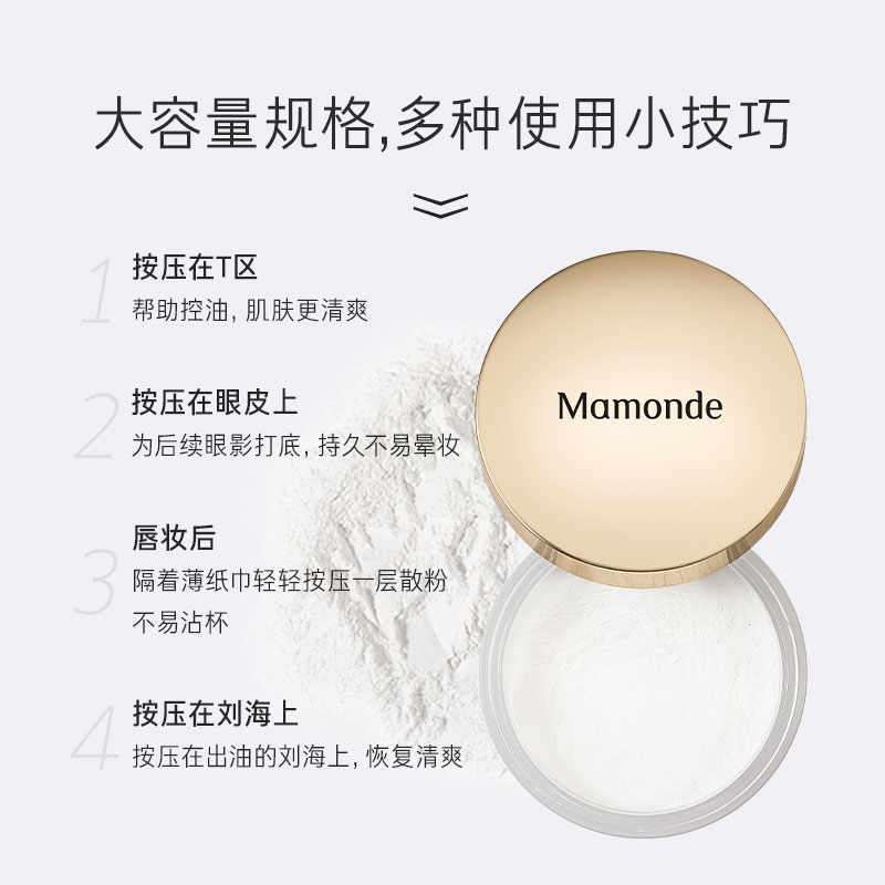 商品简介:【买即赠50ml洁颜油】梦妆棉花糖丝柔蜜粉,控油定妆柔光蜜粉,散粉,细腻净透细腻薄透不卡纹,清透柔焦,水感持妆,不惧脱妆尴尬,十二小时控油不脱妆!