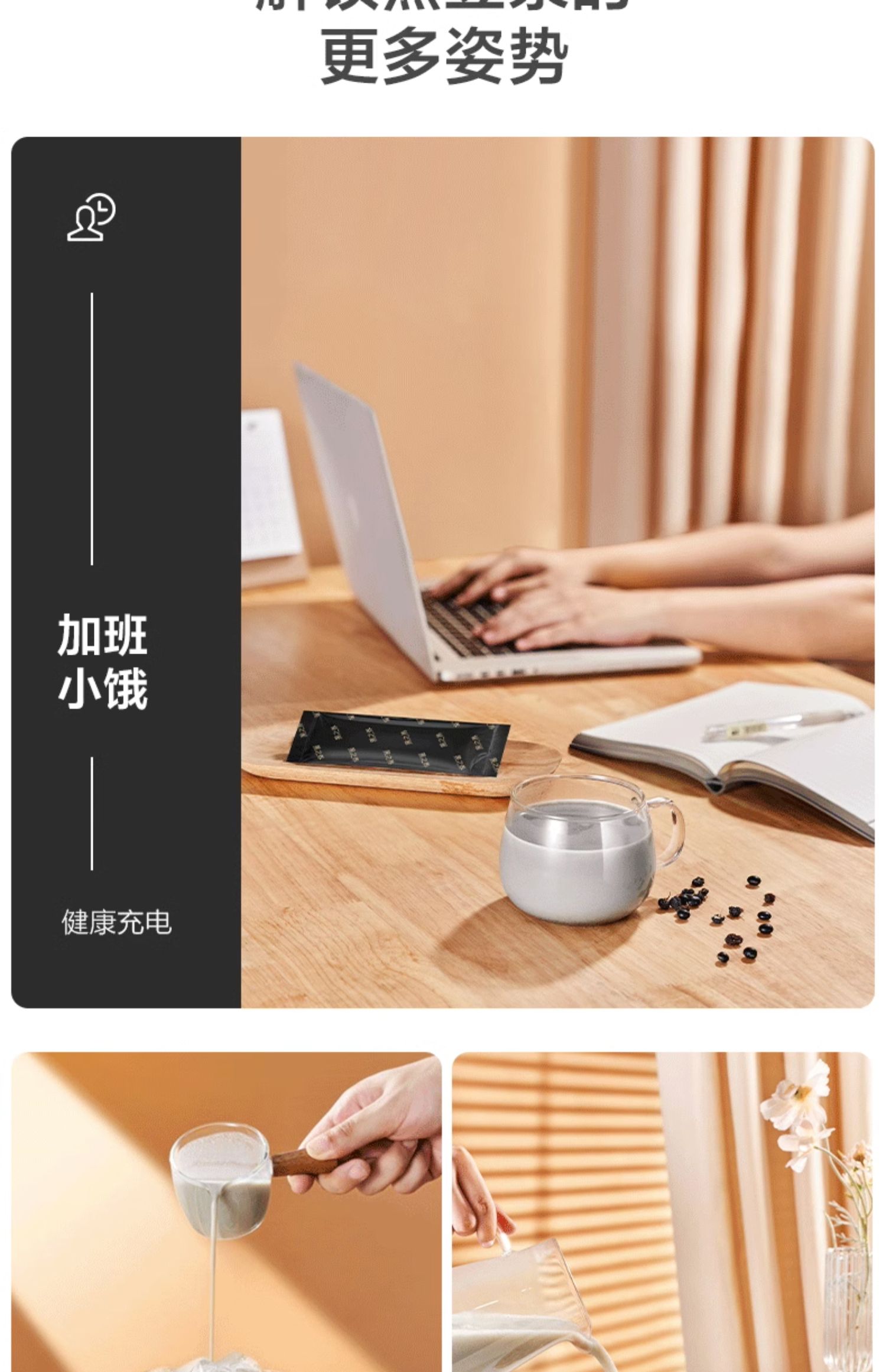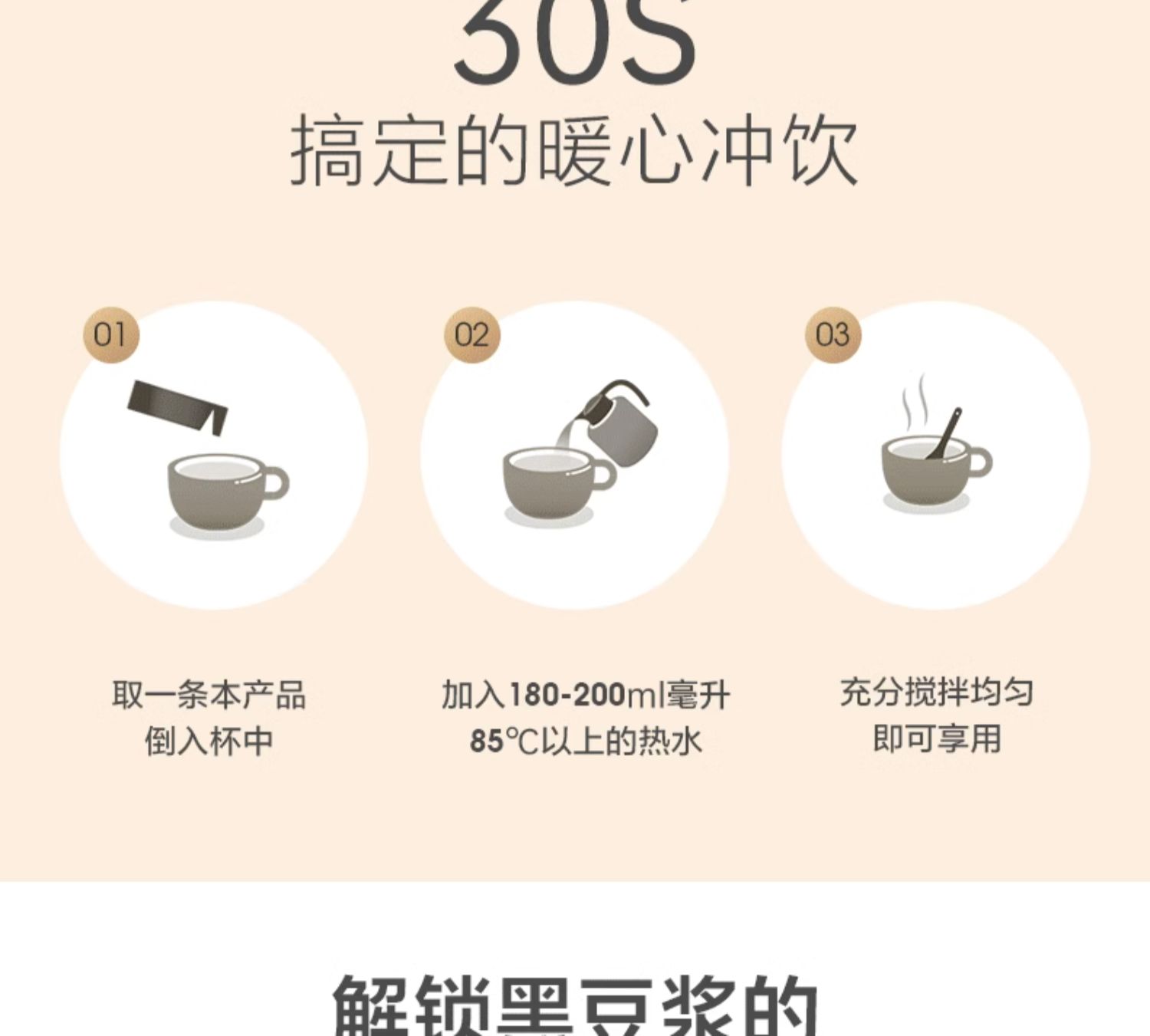 商品简介:【五谷磨房】黑之养黑豆豆浆粉,无添加孕妇营养早餐,小袋速溶冲饮,醇黑营养,活力新生,一大包14小袋,拆开即冲泡,简单方便,非转基因,不然任何添加成分,大人小孩都爱喝!