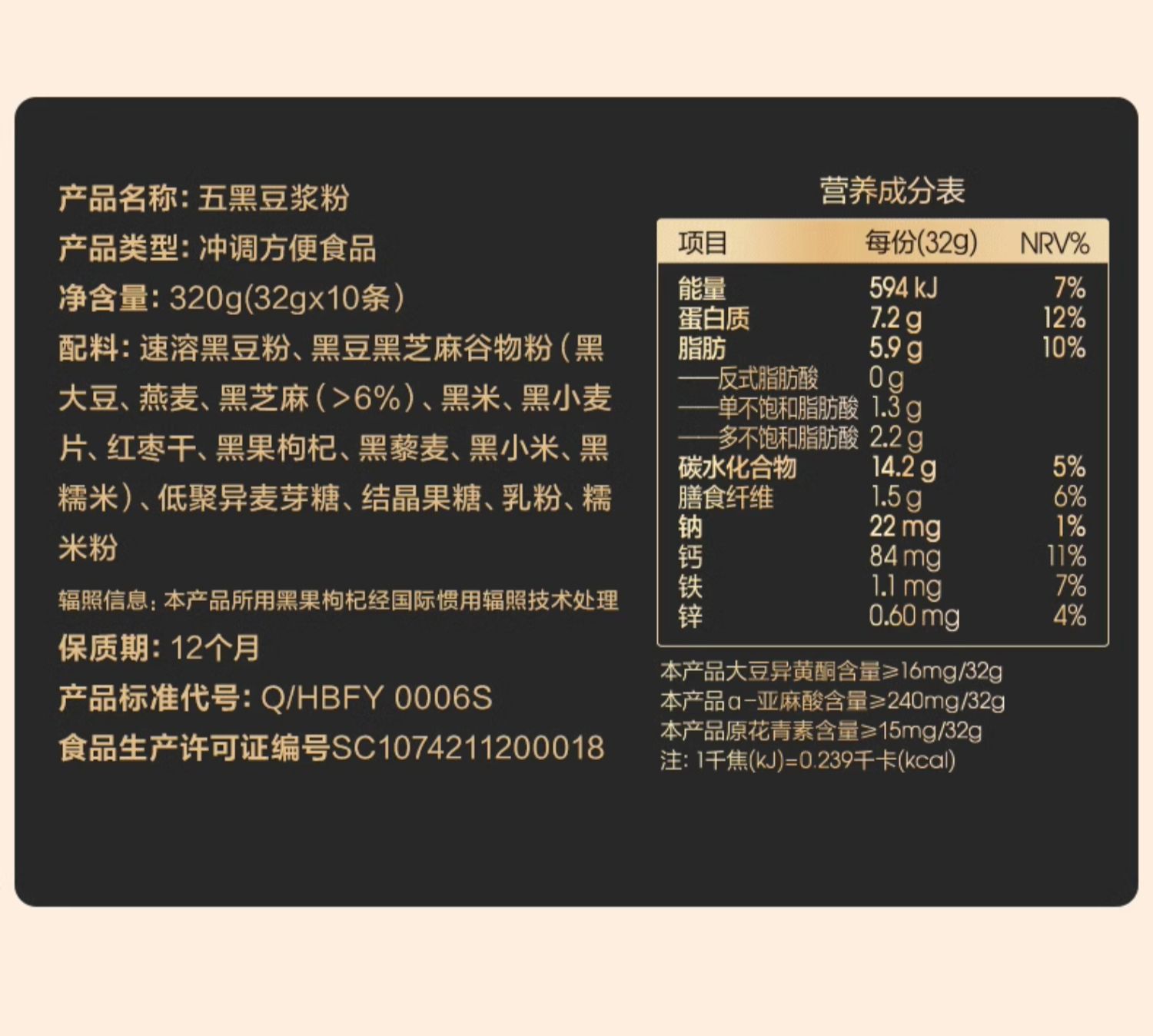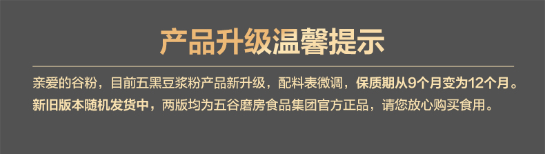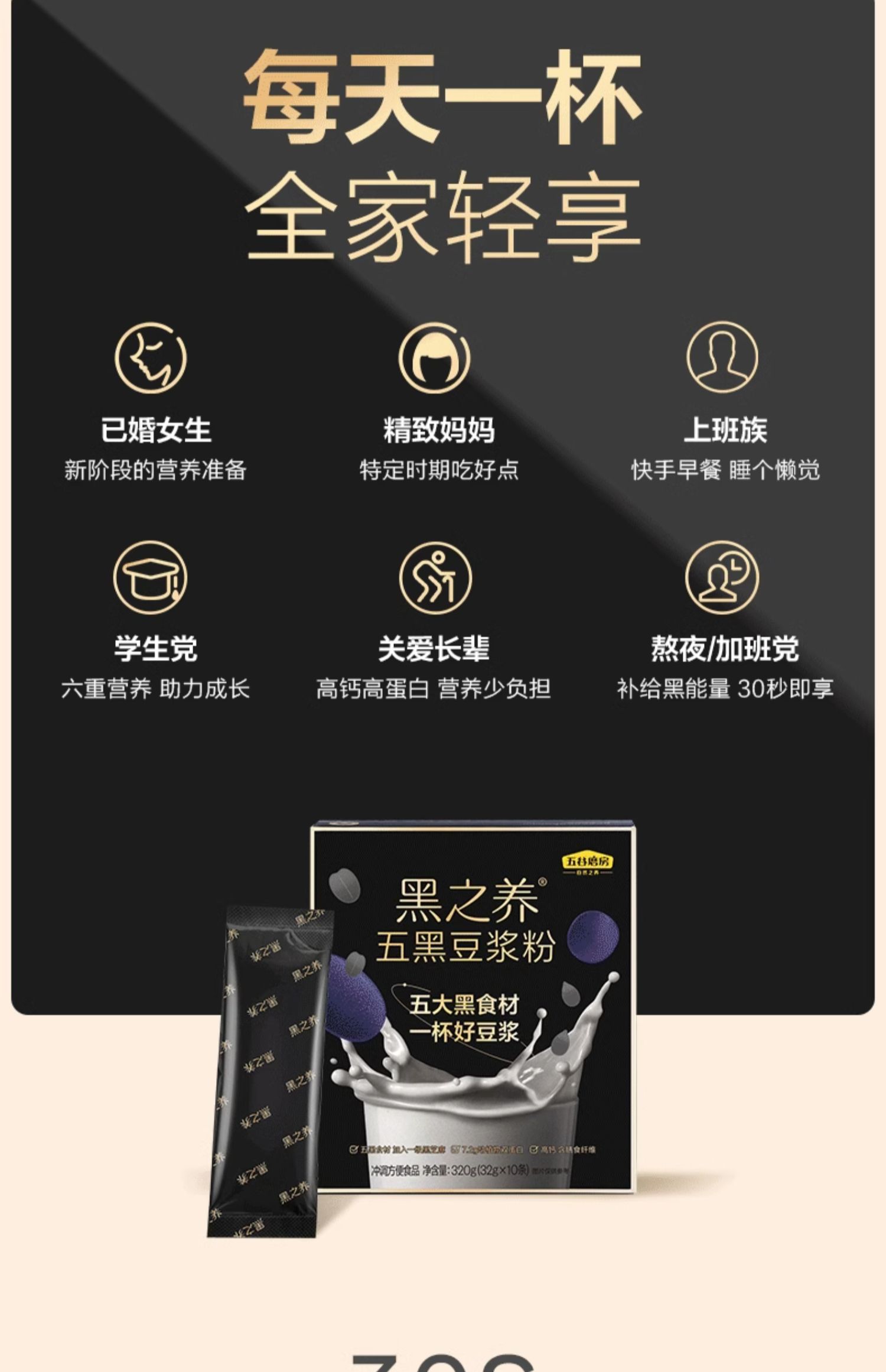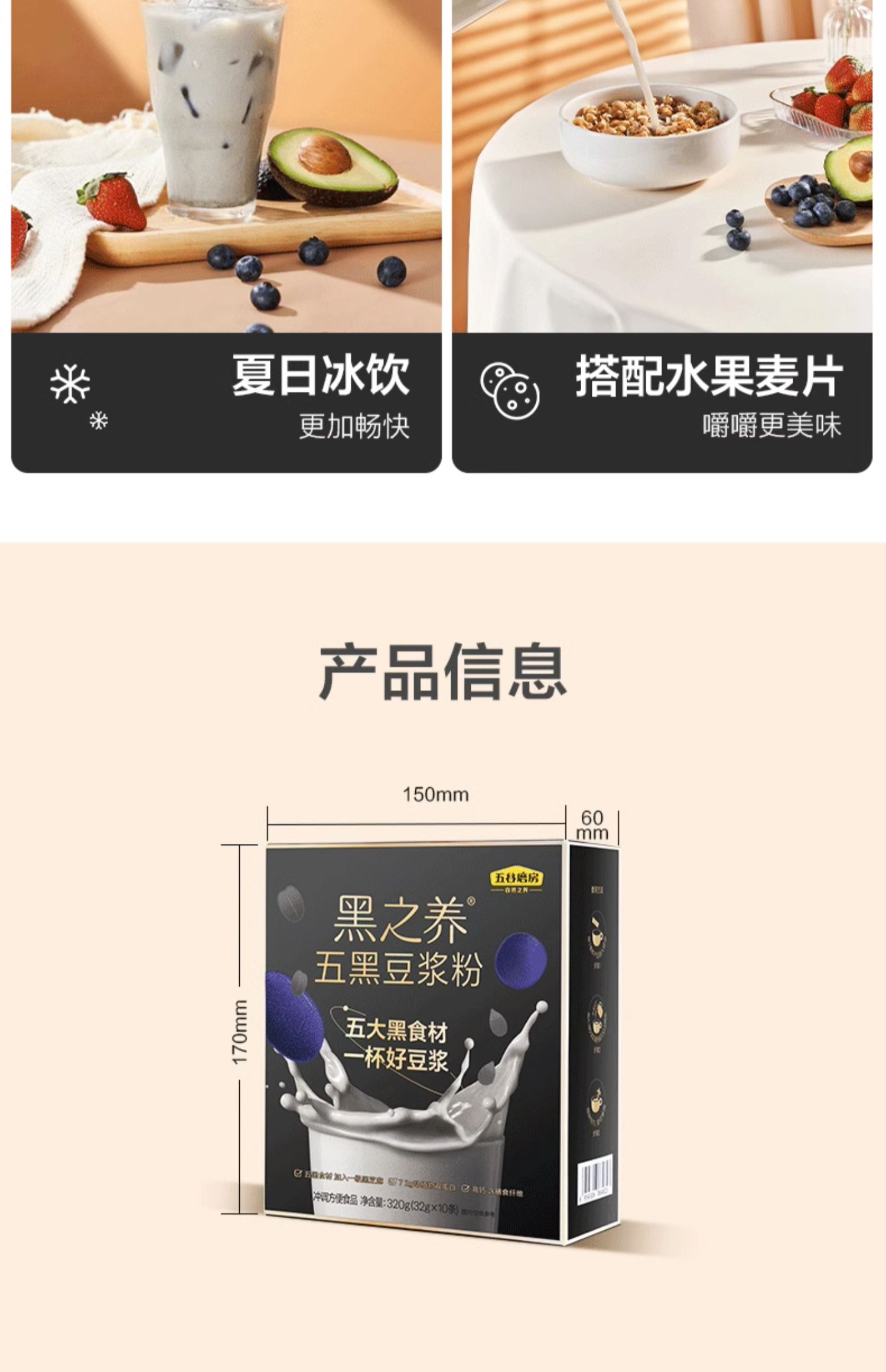 商品介绍:五谷磨房五黑豆浆粉320g盒【拍1发3】