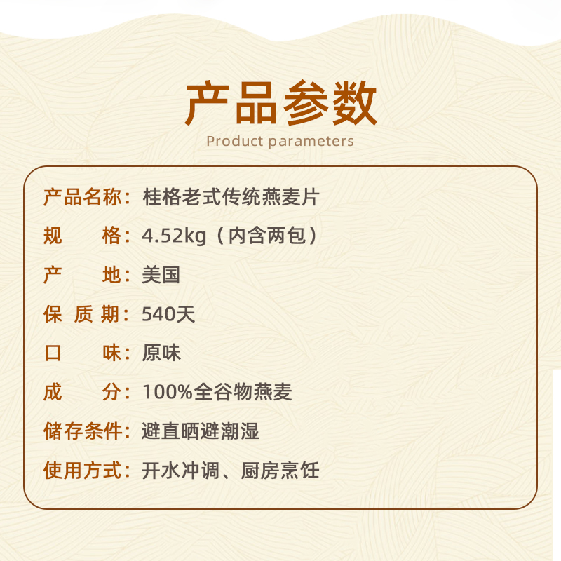 商品名称:【自营】美国进口桂格QUAKER传统纯燕麦片早餐冲饮营养代餐4.52kg