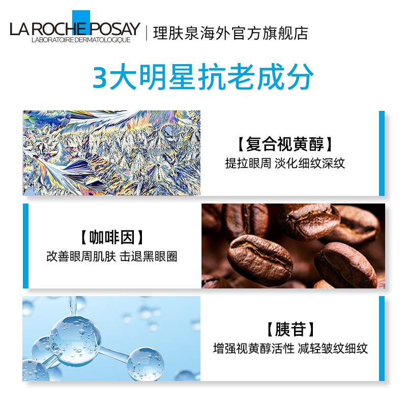 商品简介:【海外店立即抢购】理肤泉视黄醇眼霜A醇紧致抗皱淡纹黑眼圈B。