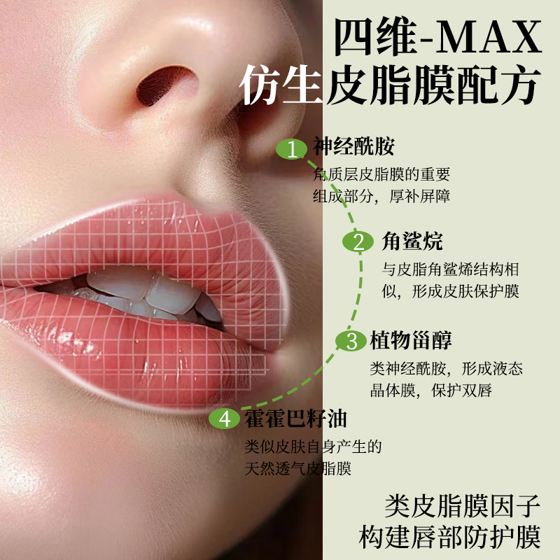 唇膜滋润不油腻,涂完嘴巴嫩嫩的